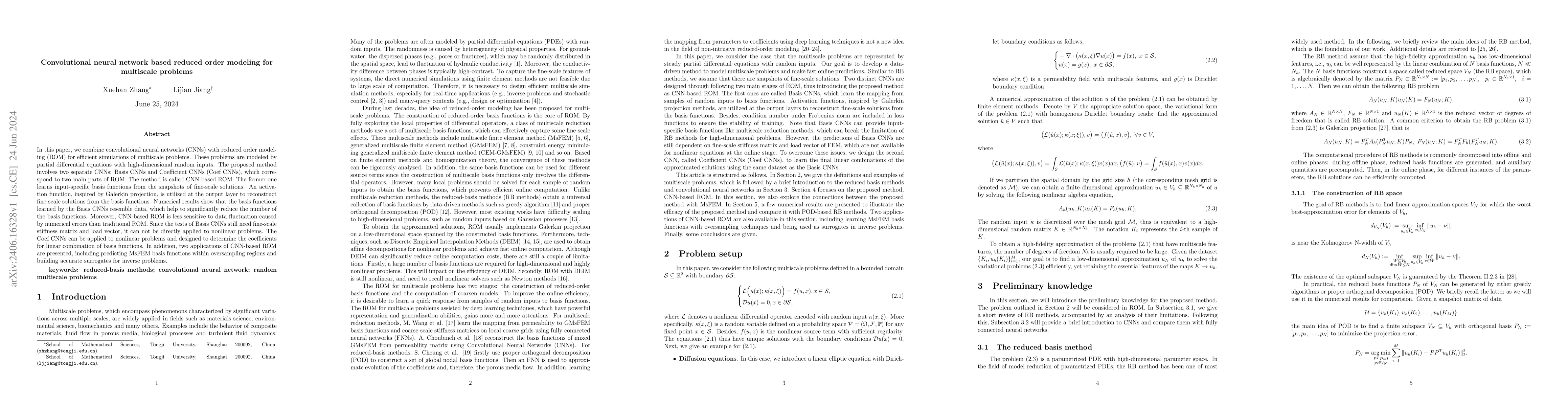 The paper proposes a CNN-based ROM method for multiscale problems with high-dimensional random inputs, combining CNNs for basis and coefficient functions in reduced order modeling.