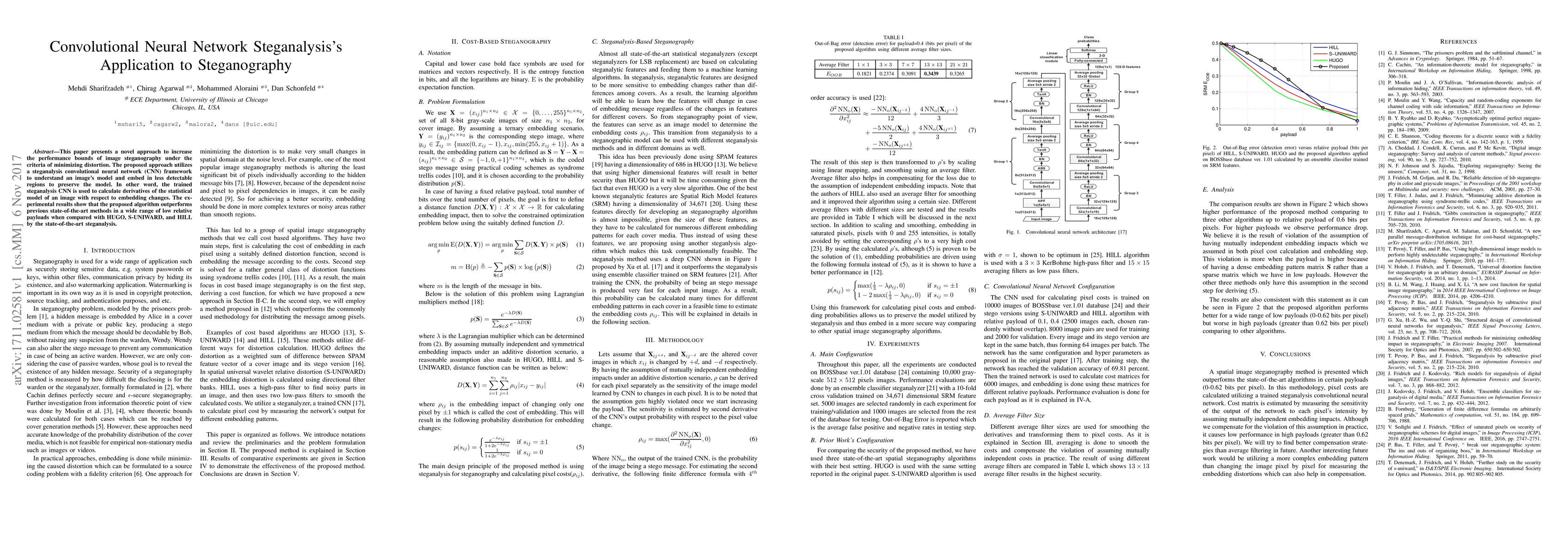 This paper introduces a convolutional neural network (CNN) steganalysis framework to enhance image steganography, embedding data in less detectable areas to minimize distortion. The proposed method outperforms existing techniques, including HUGO, S-UNIWARD, and HILL, across various low payload scenarios.
