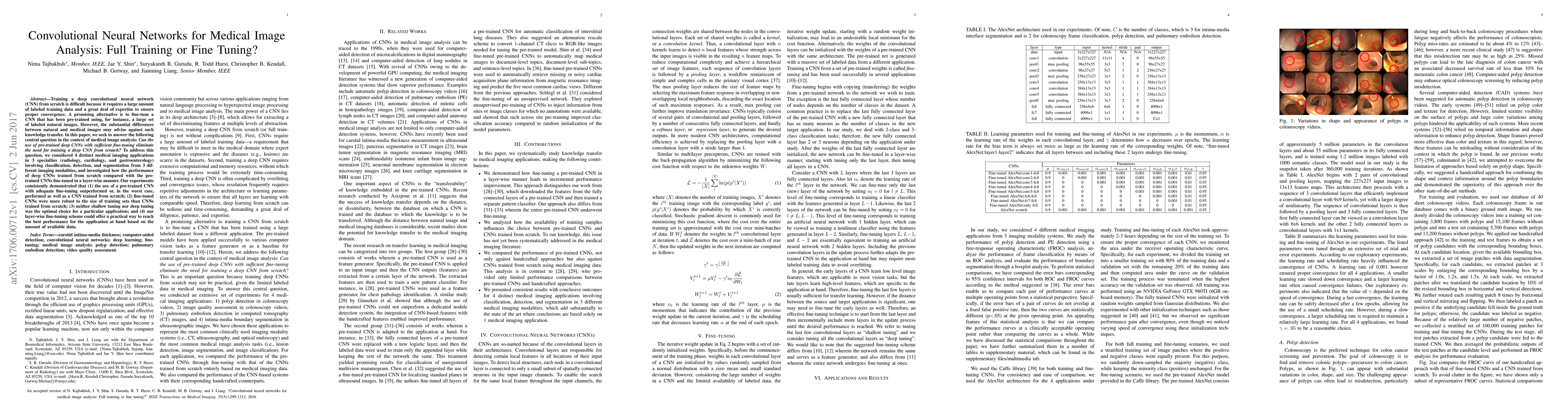 This paper investigates whether fine-tuning pre-trained deep convolutional neural networks (CNNs) can outperform CNNs trained from scratch for medical image analysis. The study found that fine-tuned CNNs generally performed as well or better than scratch-trained CNNs, especially with limited training data, and highlighted the importance of a layer-wise fine-tuning approach.