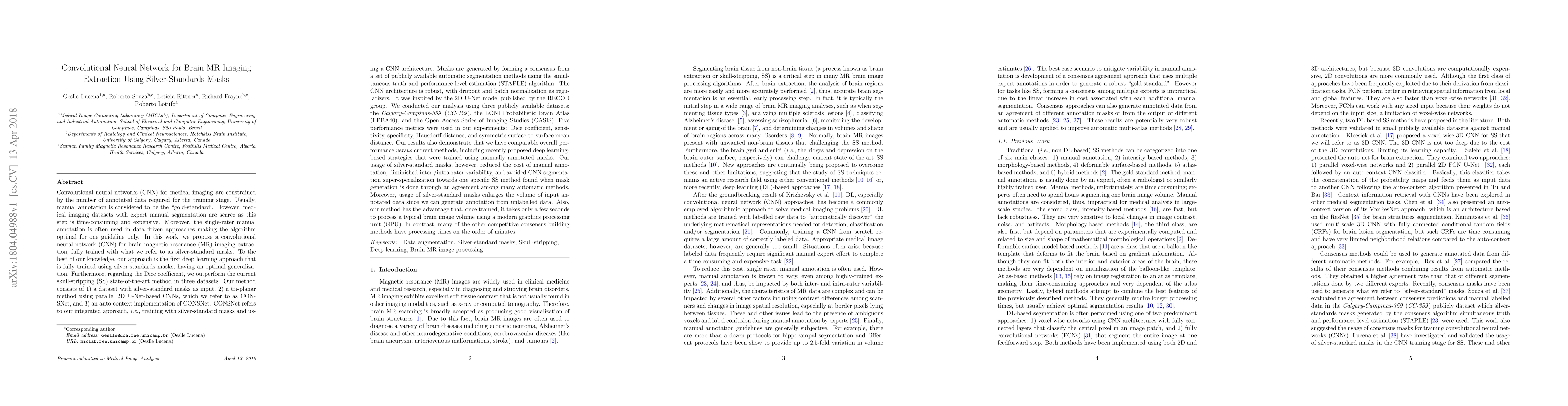 This paper proposes a convolutional neural network (CNN) for skull-stripping in brain MR imaging, trained with "silver standard" masks to reduce reliance on costly and time-consuming expert manual annotations. The method, CONSNet, outperforms current state-of-the-art techniques, decreases variability, and processes images in seconds.