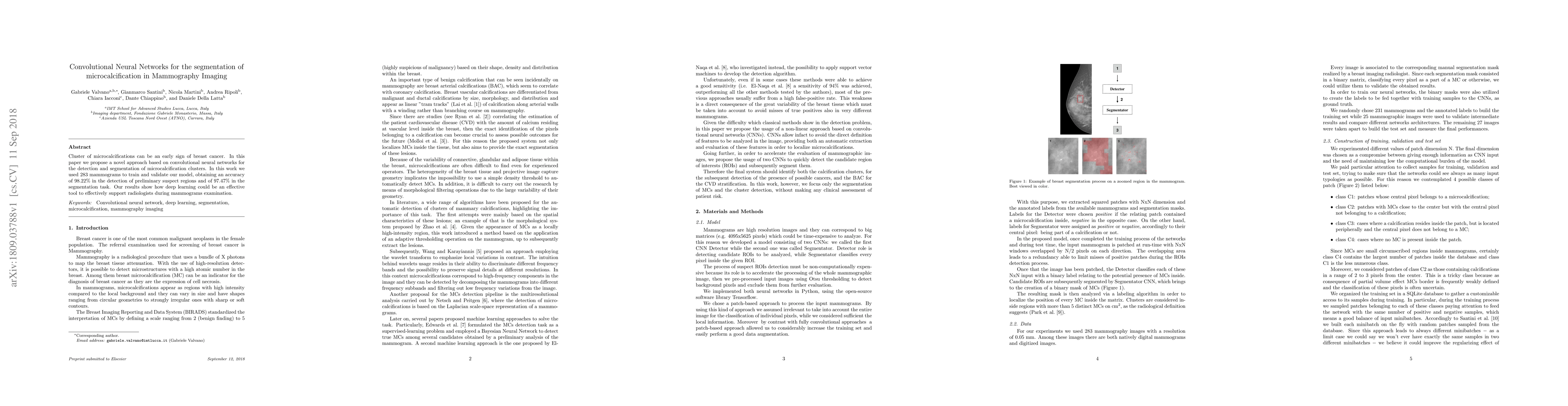 The paper presents a novel CNN-based architecture for microcalcification detection and segmentation in mammography images, employing a same convolution approach for improved performance.