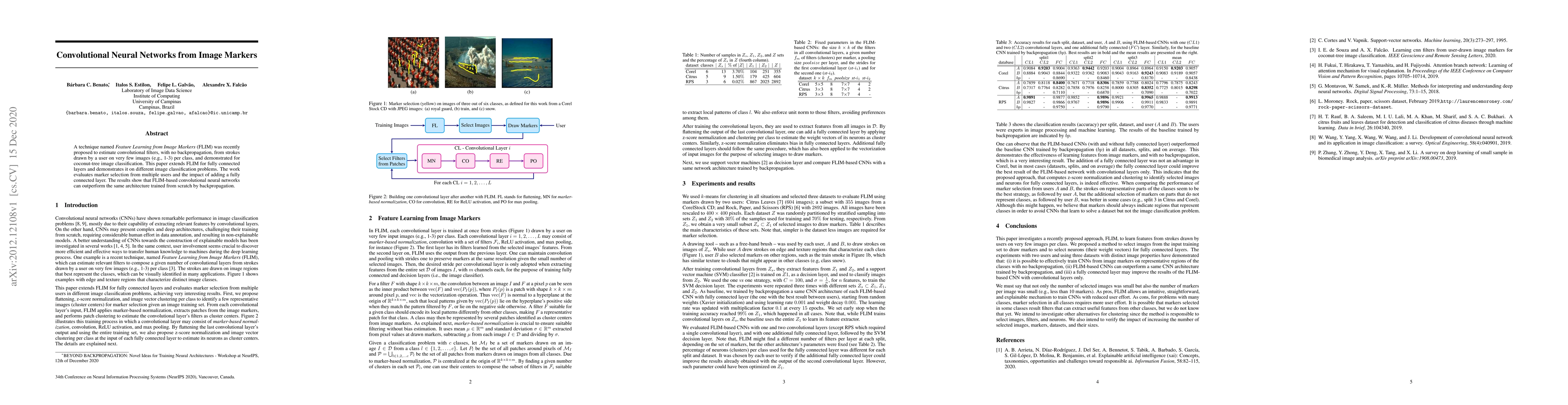 A technique named Feature Learning from Image Markers (FLIM) was recently proposed to estimate convolutional filters, with no backpropagation, from strokes drawn by a user on very few images (e.g., 1-3) per class, and demonstrated for coconut-tree image classification. This paper extends FLIM for fully connected layers and demonstrates it on different image classification problems. The work evaluates marker selection from multiple users and the impact of adding a fully connected layer. The results show that FLIM-based convolutional neural networks can outperform the same architecture trained from scratch by backpropagation.