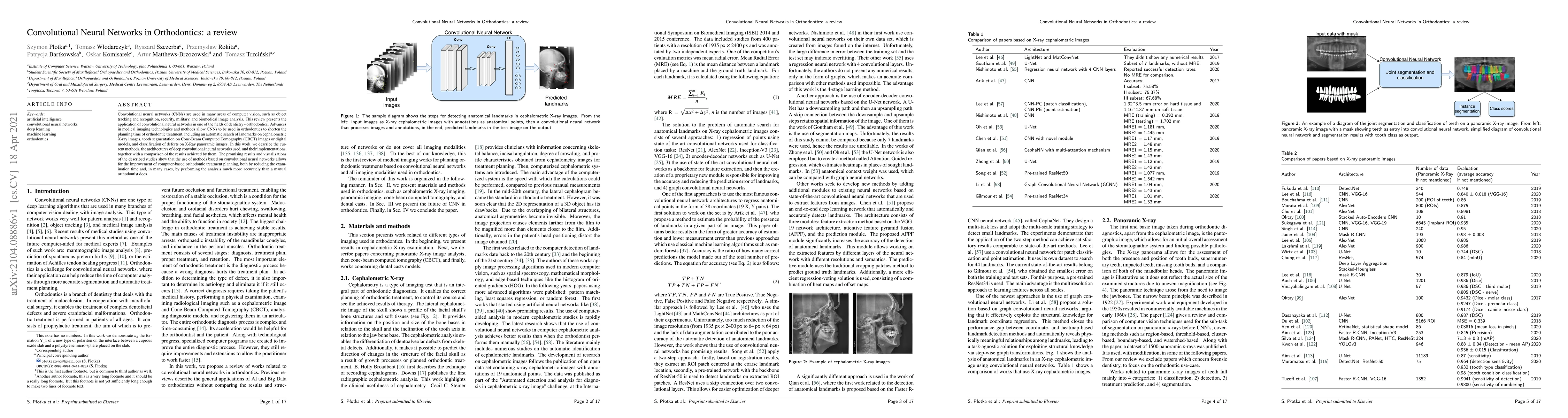 This review explores the application of convolutional neural networks (CNNs) in orthodontics, highlighting their use in automating tasks like landmark detection, tooth segmentation, and defect classification, which significantly improve the efficiency and accuracy of orthodontic treatment planning. The study compares various CNN architectures and their implementations, demonstrating promising results in reducing examination time and enhancing diagnostic precision.