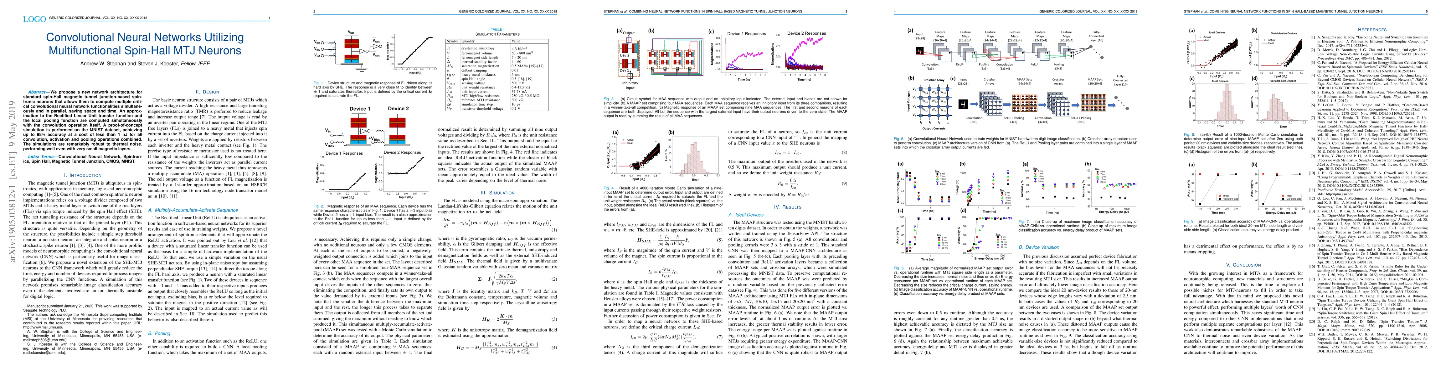We propose a new network architecture for standard spin-Hall magnetic tunnel junction-based spintronic neurons that allows them to compute multiple critical convolutional neural network functionalities simultaneously and in parallel, saving space and time. An approximation to the Rectified Linear Unit transfer function and the local pooling function are computed simultaneously with the convolution operation itself. A proof-of-concept simulation is performed on the MNIST dataset, achieving up to 98% accuracy at a cost of less than 1 nJ for all convolution, activation and pooling operations combined. The simulations are remarkably robust to thermal noise, performing well even with very small magnetic layers.