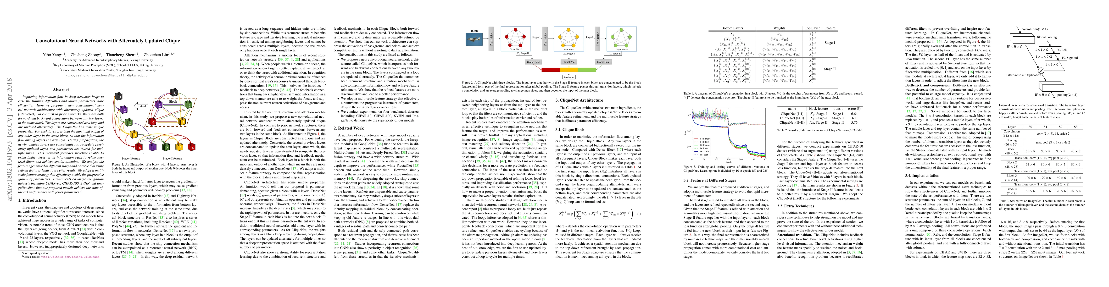 A new neural network architecture called CliqueNet is proposed to improve information flow and achieve state-of-the-art performance on image recognition datasets with fewer parameters.