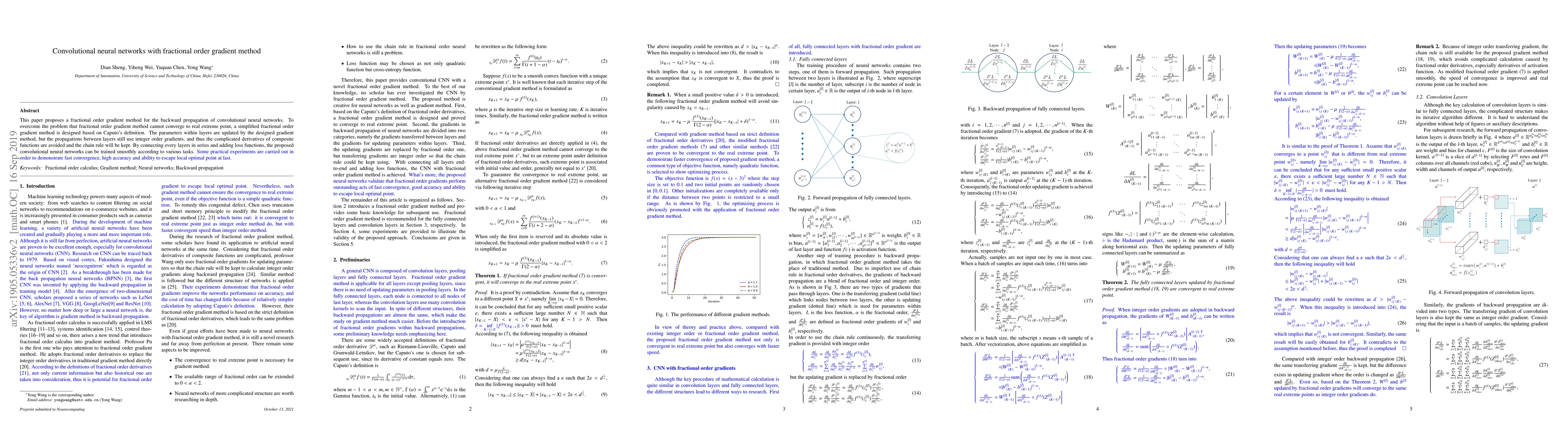 This paper introduces a fractional order gradient method for training convolutional neural networks, addressing convergence issues by simplifying the method based on Caputo's definition. The proposed method updates layer parameters while maintaining integer order gradients for layer propagations, demonstrating fast convergence, high accuracy, and local optimum escape in practical experiments.