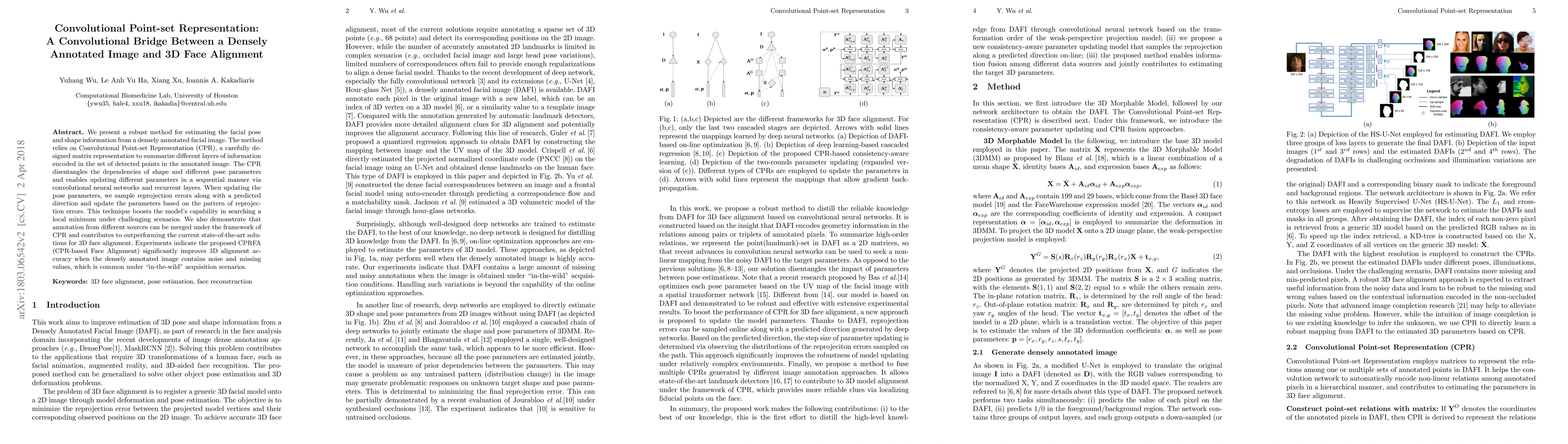 We present a robust method for estimating the facial pose and shape information from a densely annotated facial image. The method relies on Convolutional Point-set Representation (CPR), a carefully designed matrix representation to summarize different layers of information encoded in the set of detected points in the annotated image. The CPR disentangles the dependencies of shape and different pose parameters and enables updating different parameters in a sequential manner via convolutional neural networks and recurrent layers. When updating the pose parameters, we sample reprojection errors along with a predicted direction and update the parameters based on the pattern of reprojection errors. This technique boosts the model's capability in searching a local minimum under challenging scenarios. We also demonstrate that annotation from different sources can be merged under the framework of CPR and contributes to outperforming the current state-of-the-art solutions for 3D face alignment. Experiments indicate the proposed CPRFA (CPR-based Face Alignment) significantly improves 3D alignment accuracy when the densely annotated image contains noise and missing values, which is common under "in-the-wild" acquisition scenarios.