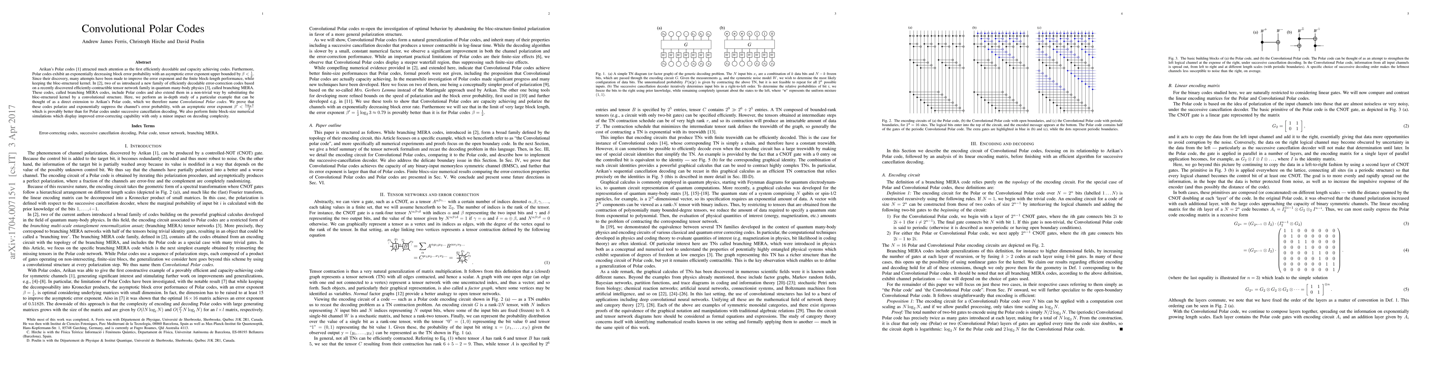 Convolutional Polar codes extend Arikan's Polar codes by incorporating a convolutional structure, improving the asymptotic error exponent to log_2(3)/2 and enhancing error-correcting performance, while maintaining manageable decoding complexity. Numerical simulations show these codes outperform traditional Polar codes in finite block lengths.