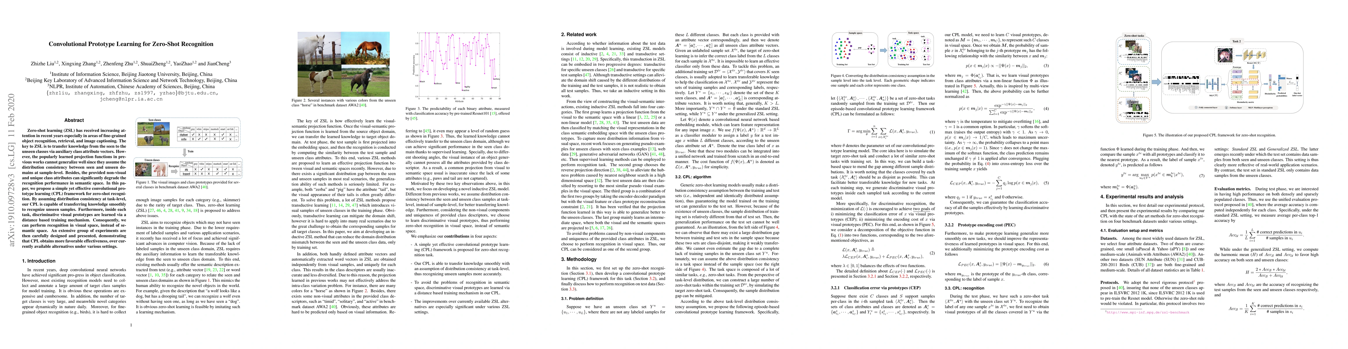 This paper proposes a convolutional prototype learning (CPL) framework for zero-shot recognition, which transfers knowledge from seen to unseen classes by assuming distribution consistency at the task-level and learning discriminative visual prototypes, achieving better performance than existing methods.