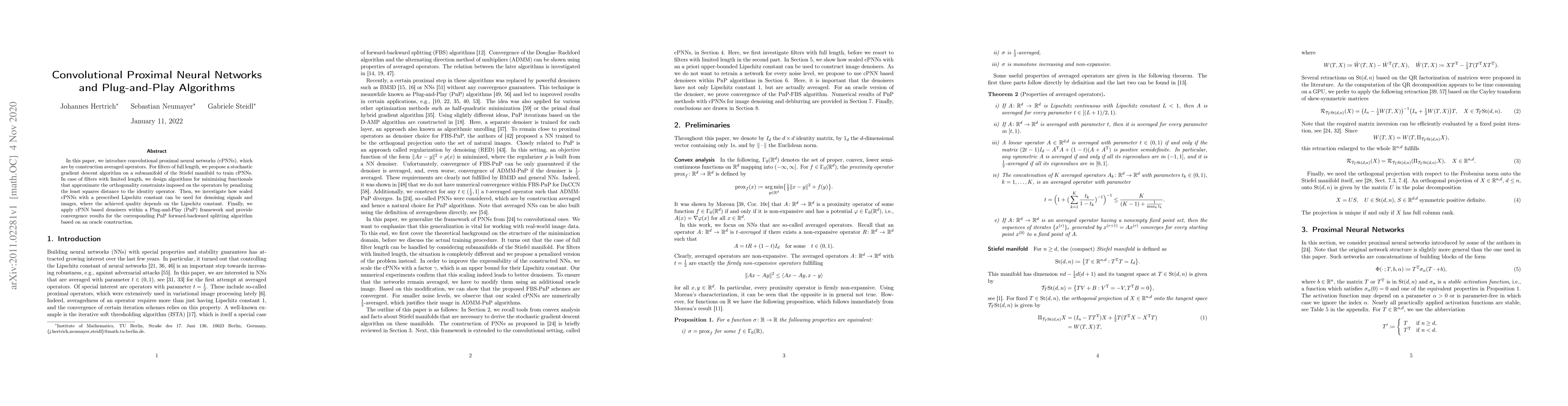 Researchers introduced Convolutional Proximal Neural Networks (cPNNs) that can be trained with a variety of algorithms for denoising signals and images. The quality of the output depends on the Lipschitz constant, which is used to scale the networks.