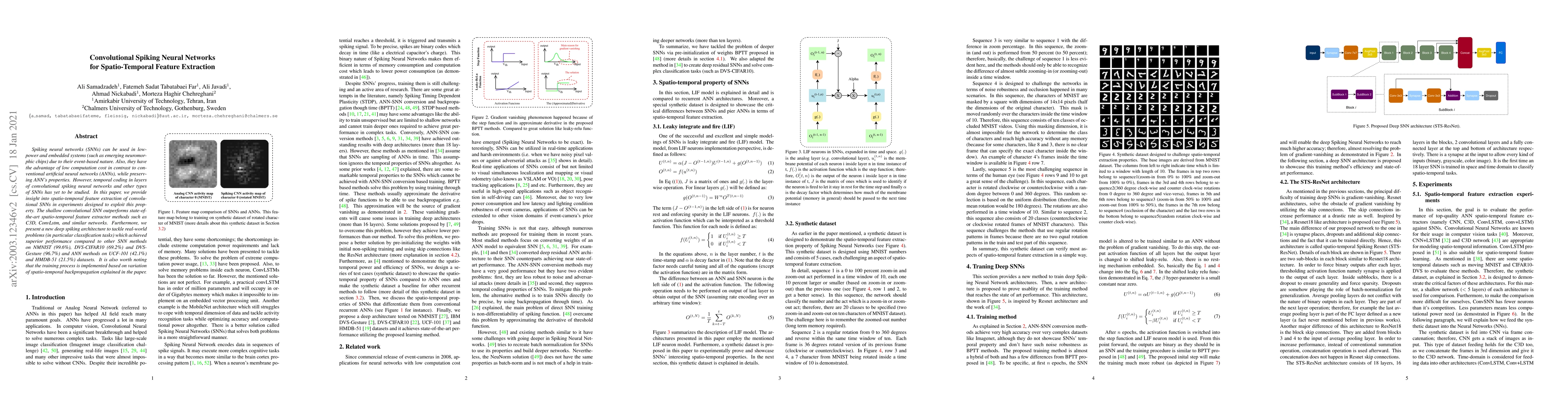 This paper explores convolutional spiking neural networks (SNNs) for efficient spatio-temporal feature extraction, demonstrating superior performance over conventional ANNs and other spatio-temporal feature extractors. The proposed deep spiking architecture achieves high accuracy on various datasets, highlighting the potential of SNNs in low-power embedded systems.