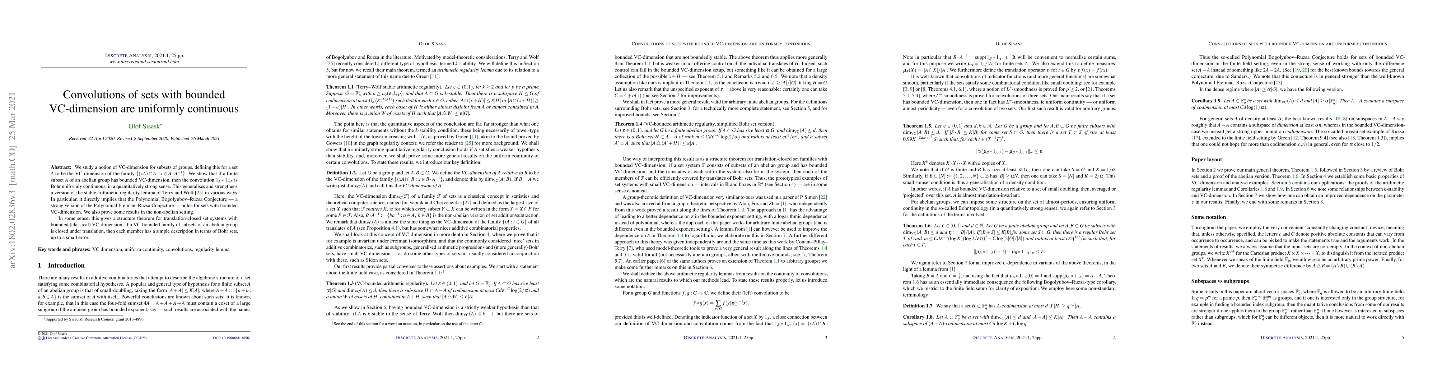 This paper establishes that convolutions of sets with bounded VC-dimension in abelian groups exhibit Bohr uniform continuity, generalizing previous results on arithmetic regularity. It also demonstrates that the Polynomial Bogolyubov-Ruzsa Conjecture holds for such sets, offering a structural theorem for translation-closed set systems with bounded VC-dimension.