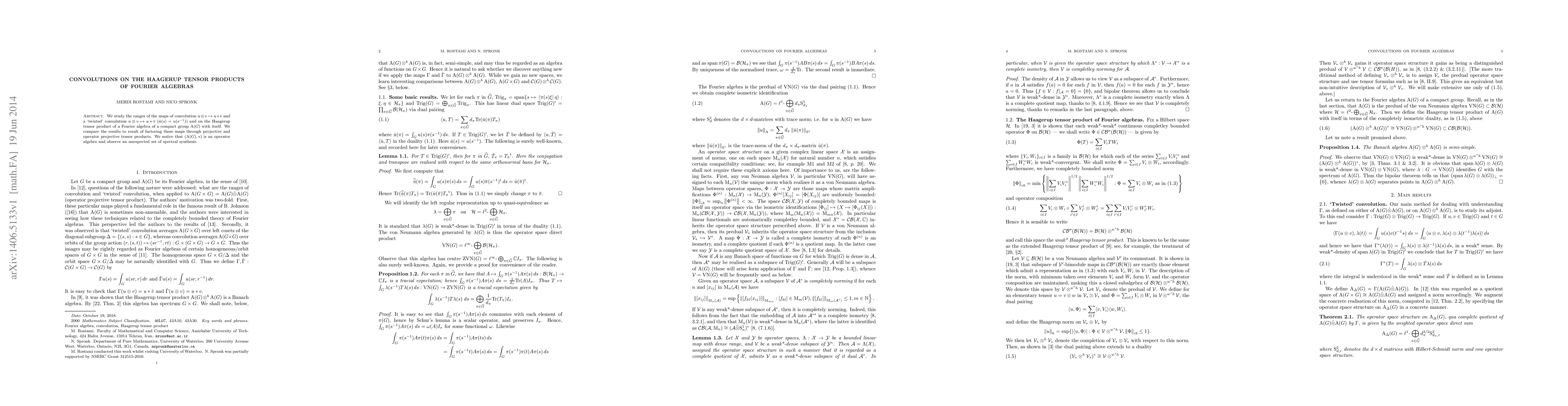 Researchers studied convolution maps on Haagerup tensor products of Fourier algebras, finding unexpected spectral synthesis and comparing results to projective and operator projective tensor products.