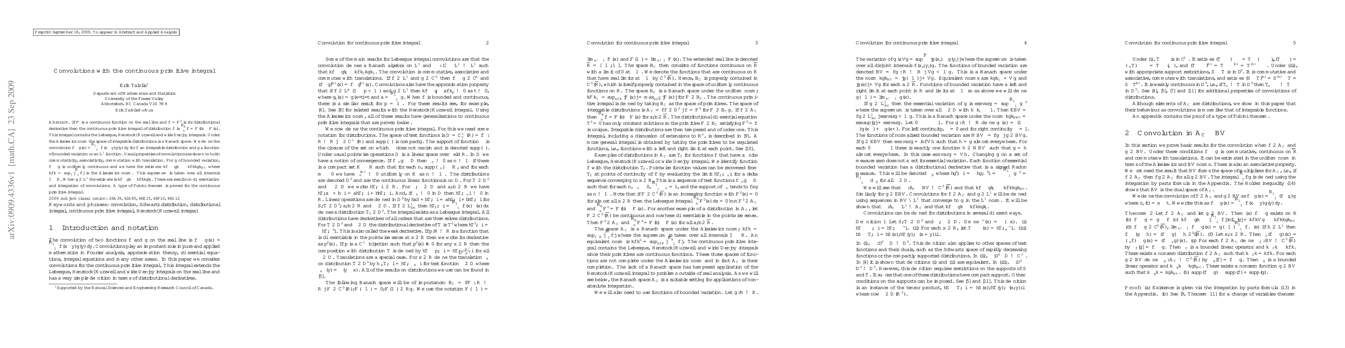 This paper introduces the continuous primitive integral for distributions and defines convolutions between integrable distributions and functions of bounded variation or $L^1$ functions. It establishes properties like commutativity, associativity, and uniform continuity for convolutions, along with relevant norm estimates and a Fubini theorem for the integral.