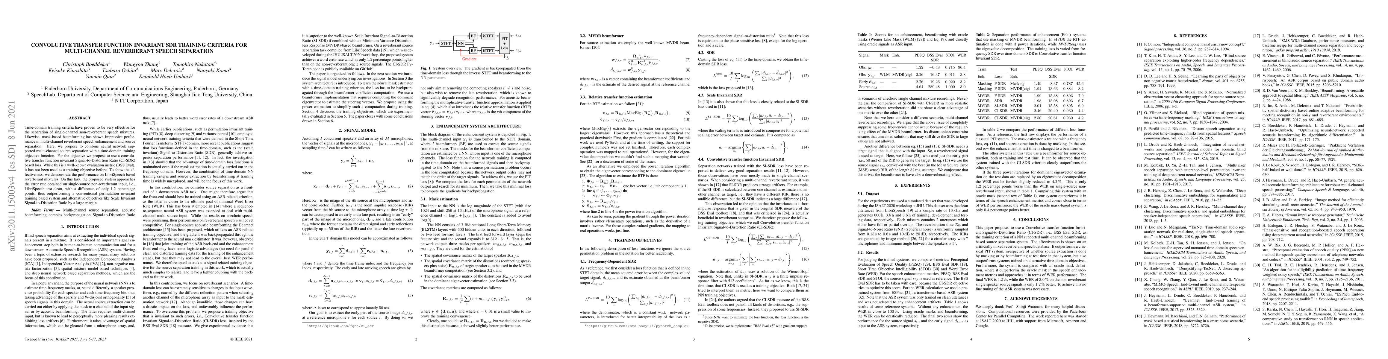 This paper proposes a novel training criterion using a convolative transfer function invariant Signal-to-Distortion Ratio (CI-SDR) for neural network-based multi-channel reverberant speech separation. The approach achieves near-single-source performance on LibriSpeech, outperforming conventional and alternative training methods.