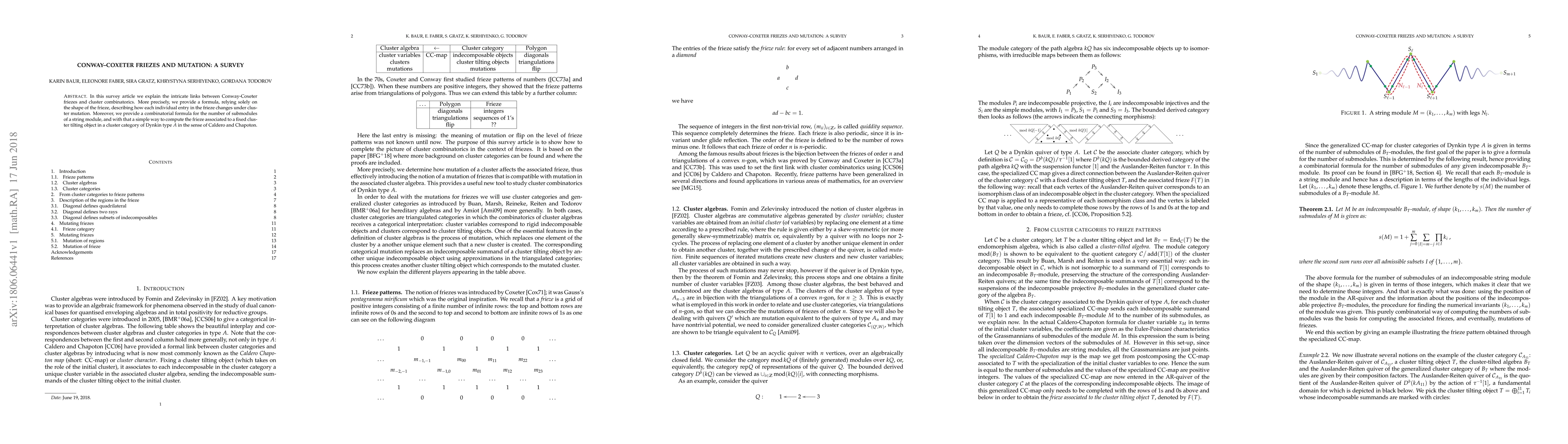In this survey article we explain the intricate links between Conway-Coxeter friezes and cluster combinatorics. More precisely, we provide a formula, relying solely on the shape of the frieze, describing how each individual entry in the frieze changes under cluster mutation. Moreover, we provide a combinatorial formula for the number of submodules of a string module, and with that a simple way to compute the frieze associated to a fixed cluster tilting object in a cluster category of Dynkin type $A$ in the sense of Caldero and Chapoton.