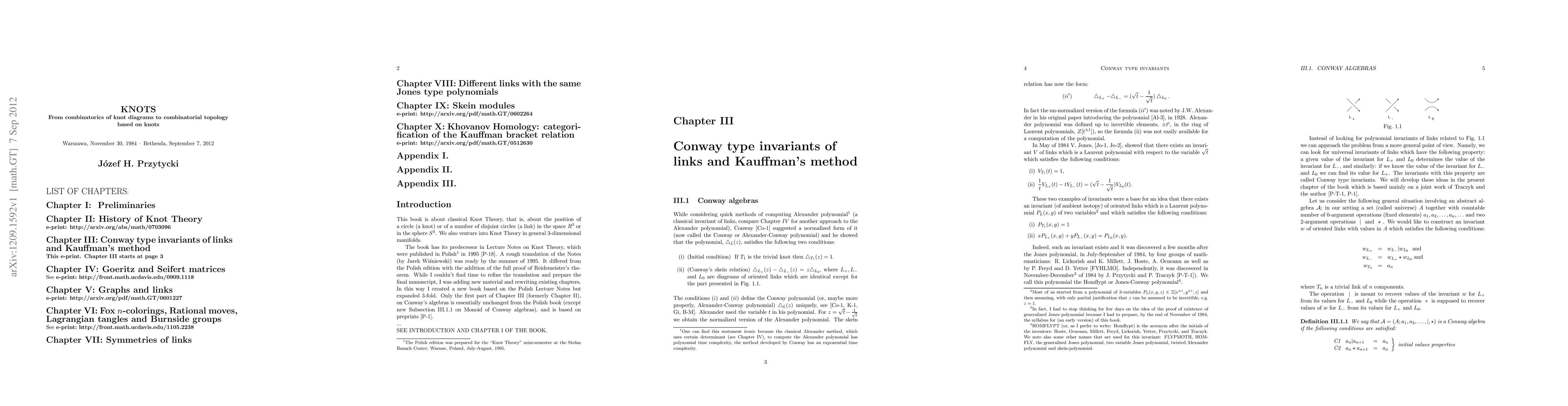This chapter introduces Conway algebras and their link invariants, including the Homflypt polynomial and signatures, and presents a proof for Conway type invariants. It also details Kauffman's method for constructing link invariants, introducing the Kauffman polynomial and developing Kauffman algebras parallel to Conway algebras.