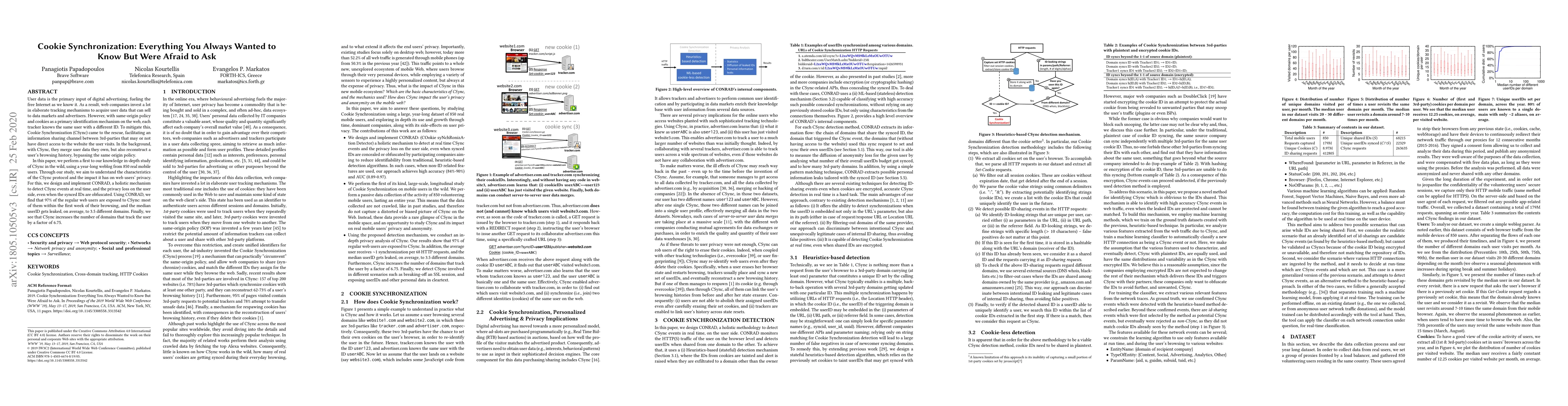 This paper investigates Cookie Synchronization (CSync), a method used to merge user data across different trackers, thereby reconstructing user browsing histories and bypassing same-origin policy. Using CONRAD, a real-time detection mechanism, the study reveals that 97% of mobile users are exposed to CSync, with user IDs leaking to an average of 3.5 different domains, significantly increasing tracking by a factor of 6.75.
