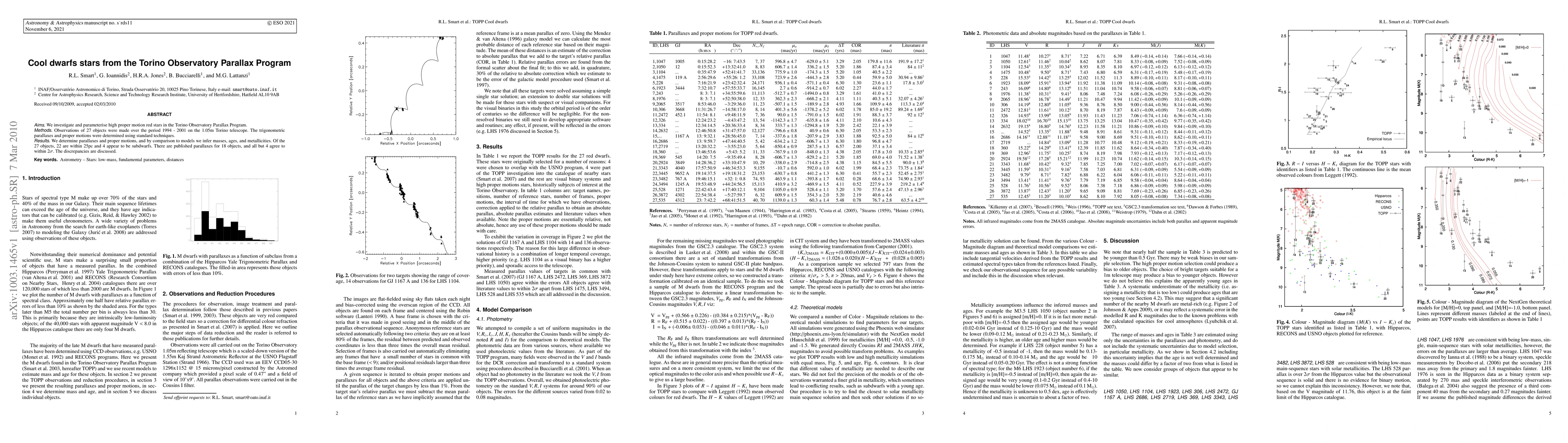 We investigate and parameterise high proper motion red stars in the Torino Observatory Parallax Program. Observations of 27 objects were made over the period 1994 - 2001 on the 1.05m Torino telescope. The trigonometric parallaxes and proper motions were determined using standard techniques. We determine parallaxes and proper motions, and by comparison to models we infer masses, ages, and {metallicities}. Of the 27 objects, 22 are within 25pc and 4 appear to be subdwarfs. There are published parallaxes for 18 objects, and all but 4 agree to within 2$\sigma$. The discrepancies are discussed.