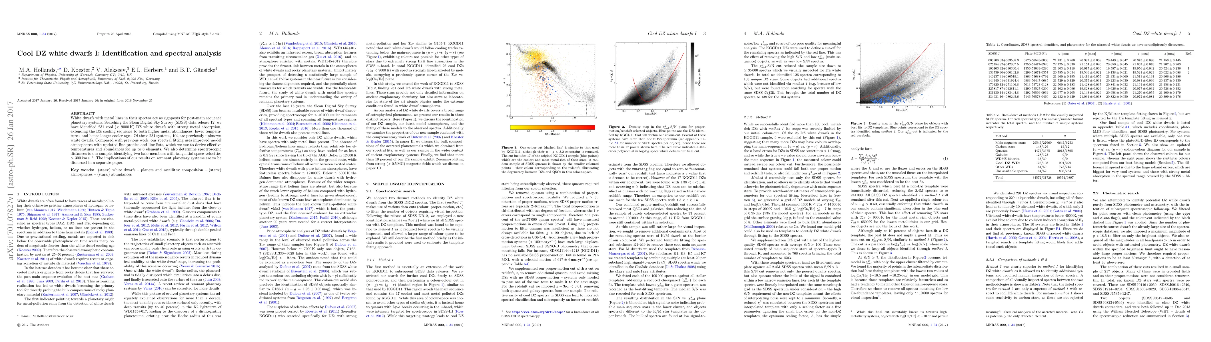 This paper identifies 231 cool DZ white dwarfs with metal lines in their spectra from the Sloan Digital Sky Survey, extending the DZ cooling sequence. Improved spectral fitting reveals effective temperatures and abundances for up to 8 elements, with implications for remnant planetary systems to be discussed in a follow-up study.