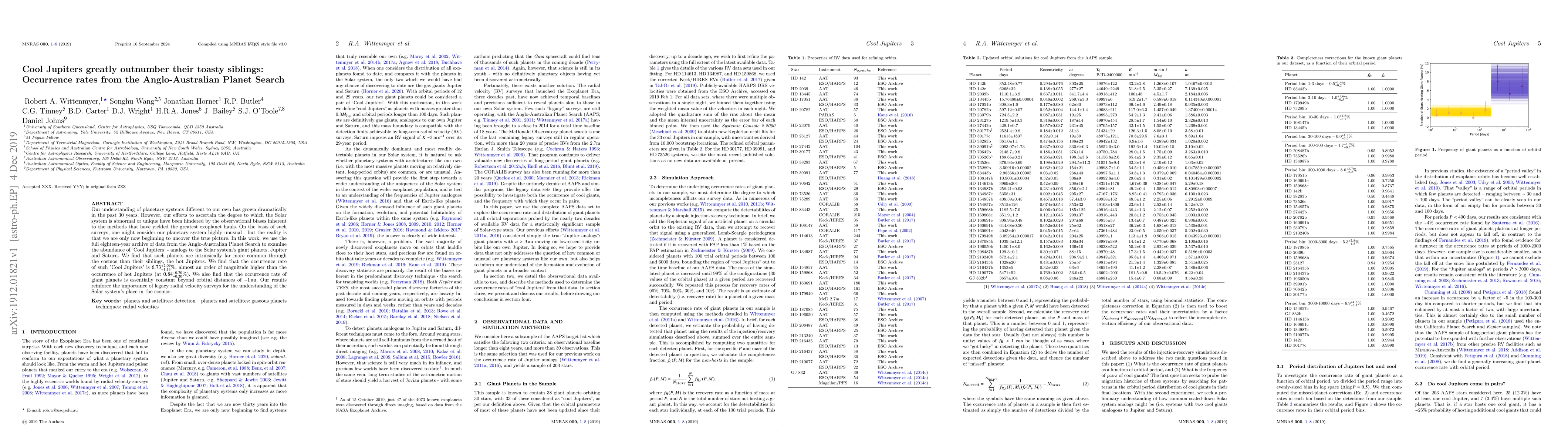 This study from the Anglo-Australian Planet Search reveals that 'Cool Jupiters'—giant planets similar to Jupiter and Saturn—are significantly more common than hot Jupiters, with an occurrence rate of 6.73%, nearly an order of magnitude higher than the 0.84% rate for hot Jupiters. These findings underscore the importance of radial velocity surveys in understanding the prevalence of planetary systems.