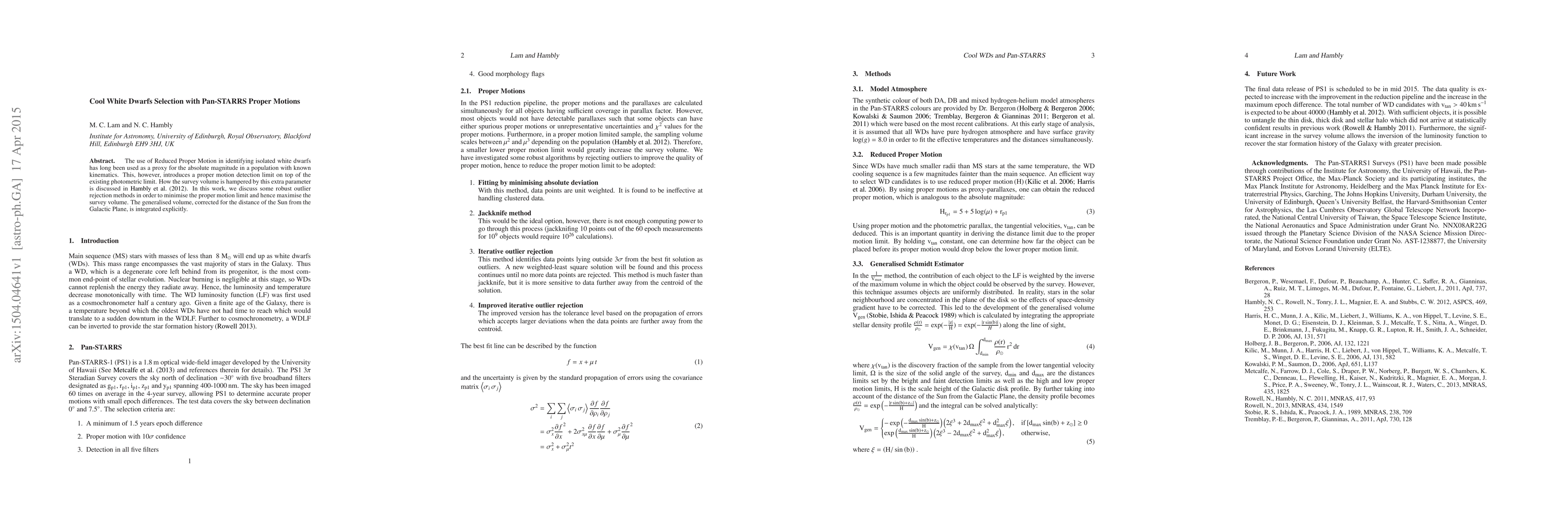The use of Reduced Proper Motion in identifying isolated white dwarfs has long been used as a proxy for the absolute magnitude in a population with known kinematics. This, however, introduces a proper motion detection limit on top of the existing photometric limit. How the survey volume is hampered by this extra parameter is discussed in Hambly et al. 2012. In this work, we discuss some robust outlier rejection methods in order to minimise the proper motion limit and hence maximise the survey volume. The generalised volume, corrected for the distance of the Sun from the Galactic Plane, is integrated explicitly.