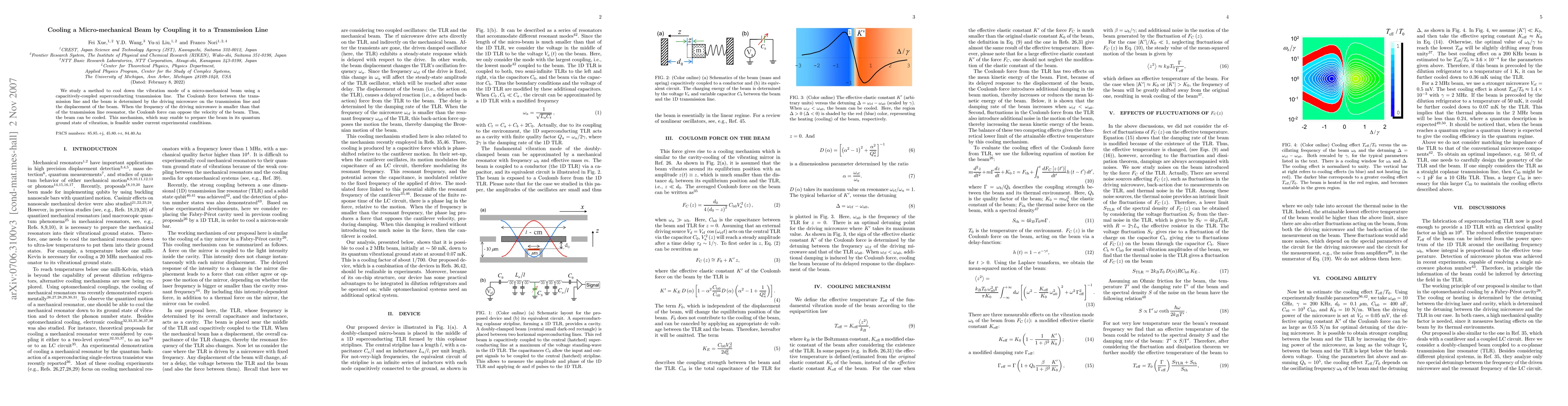 This paper proposes a method to cool the vibration mode of a micro-mechanical beam using a capacitively-coupled superconducting transmission line, where the Coulomb force induced by microwave driving can oppose the beam's velocity, potentially cooling it to its quantum ground state. The technique is deemed feasible under current experimental conditions.
