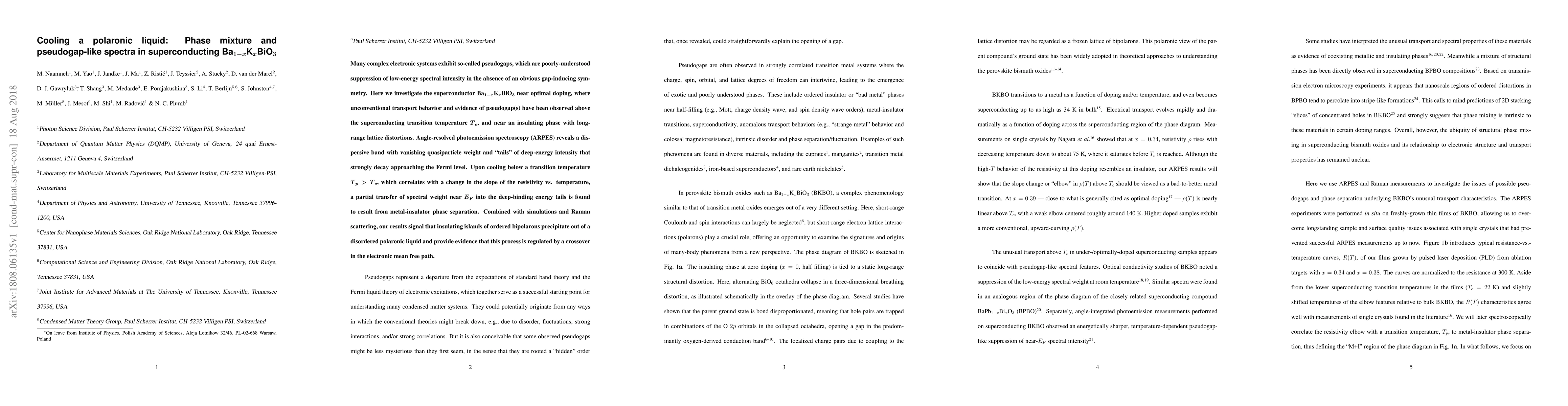 This paper investigates the superconducting phase in $Ba_{1-x}K_{x}BiO_{3}$, revealing pseudogap-like spectral features and phase separation into insulating bipolaron islands below a transition temperature $T_{p}$. ARPES data show a dispersive band with diminishing quasiparticle weight and deep-energy intensity, suggesting a polaronic liquid transitioning to a metal-insulator mixture.
