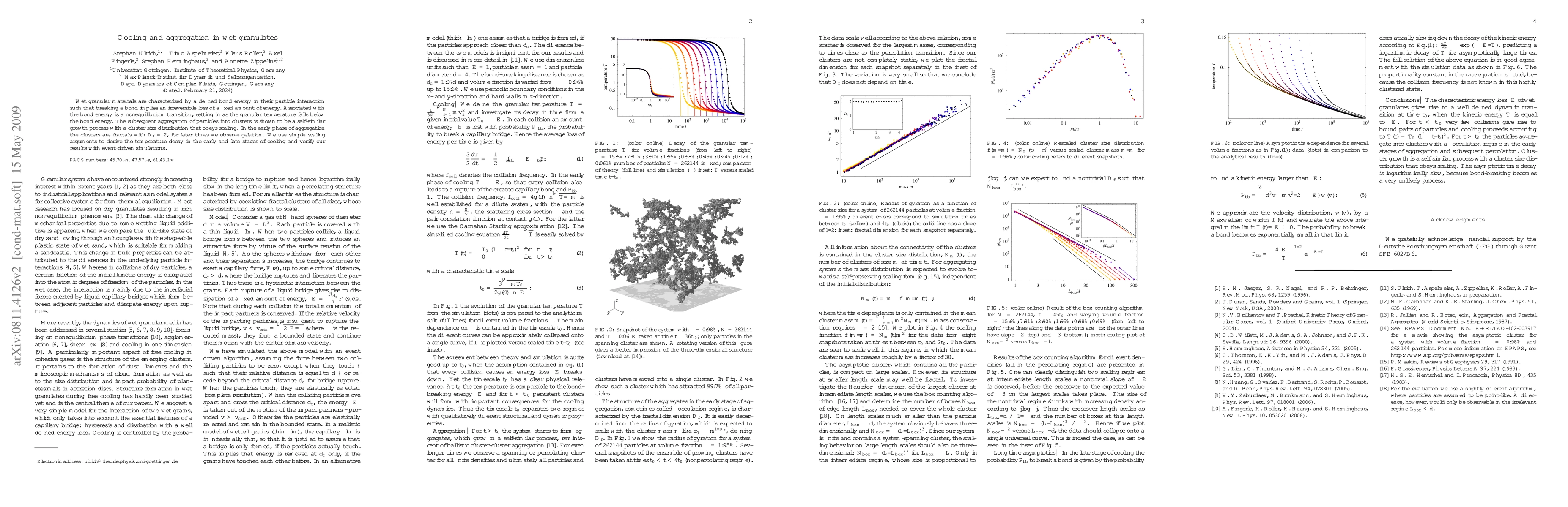 Wet granular materials are characterized by a defined bond energy in their particle interaction such that breaking a bond implies an irreversible loss of a fixed amount of energy. Associated with the bond energy is a nonequilibrium transition, setting in as the granular temperature falls below the bond energy. The subsequent aggregation of particles into clusters is shown to be a self-similar growth process with a cluster size distribution that obeys scaling. In the early phase of aggregation the clusters are fractals with D_f=2, for later times we observe gelation. We use simple scaling arguments to derive the temperature decay in the early and late stages of cooling and verify our results with event-driven simulations.