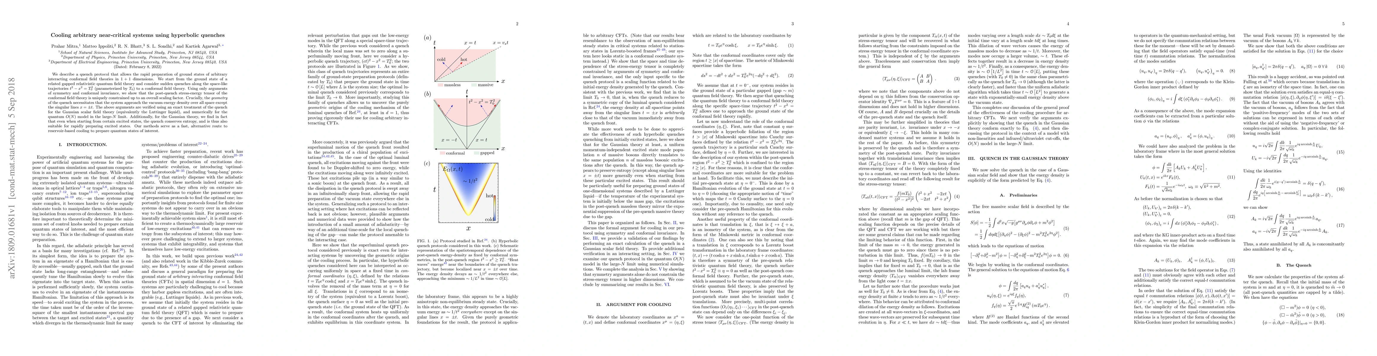 We describe a quench protocol that allows the rapid preparation of ground states of arbitrary interacting conformal field theories in $1+1$ dimensions. We start from the ground state of a related gapped relativistic quantum field theory and consider sudden quenches along the space-like trajectories $t^2 - x^2 = T^2_0$ (parameterized by $T_0$) to a conformal field theory. Using only arguments of symmetry and conformal invariance, we show that the post-quench stress-energy tensor of the conformal field theory is uniquely constrained up to an overall scaling factor. Crucially, the $\textit{geometry}$ of the quench necessitates that the system approach the vacuum energy density over all space except the singular lines $x = \pm t$. The above arguments are verified using an exact treatment of the quench for the Gaussian scalar field theory (equivalently, the Luttinger liquid), and numerically for the quantum $O(N)$ model in the large-$N$ limit. Additionally, for the Gaussian theory, we find in fact that even when starting from certain excited states, the quench conserves entropy, and is thus also suitable for rapidly preparing excited states. Our methods serve as a fast, alternative route to reservoir-based cooling to prepare quantum states of interest.