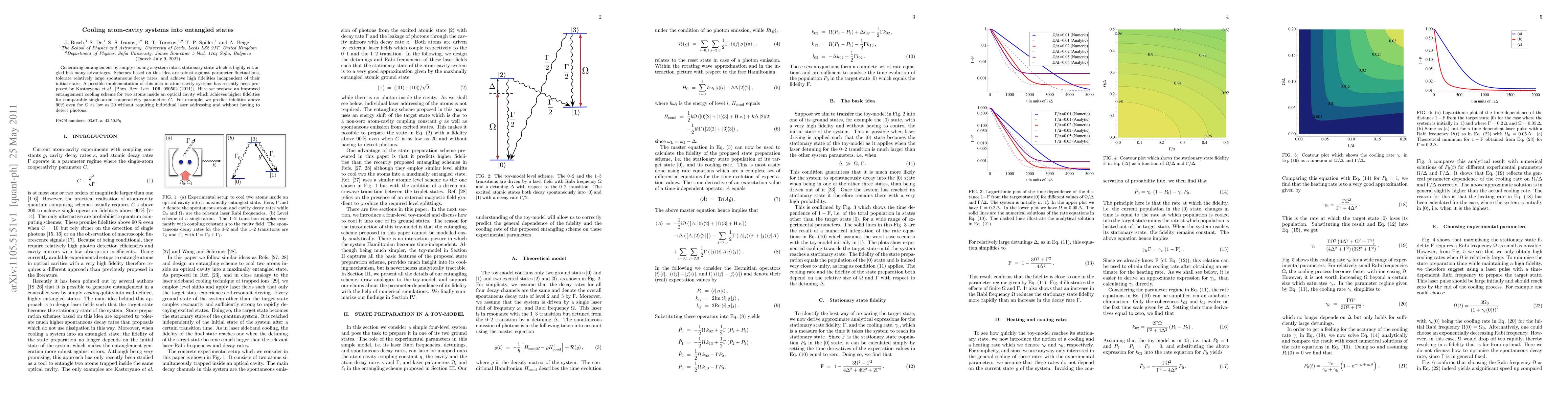 This paper proposes an enhanced entanglement cooling scheme for two atoms in an optical cavity, achieving higher fidelity entanglement generation compared to previous methods, with predicted fidelities above 90% even at low single-atom cooperativity parameters, without individual laser addressing or photon detection.