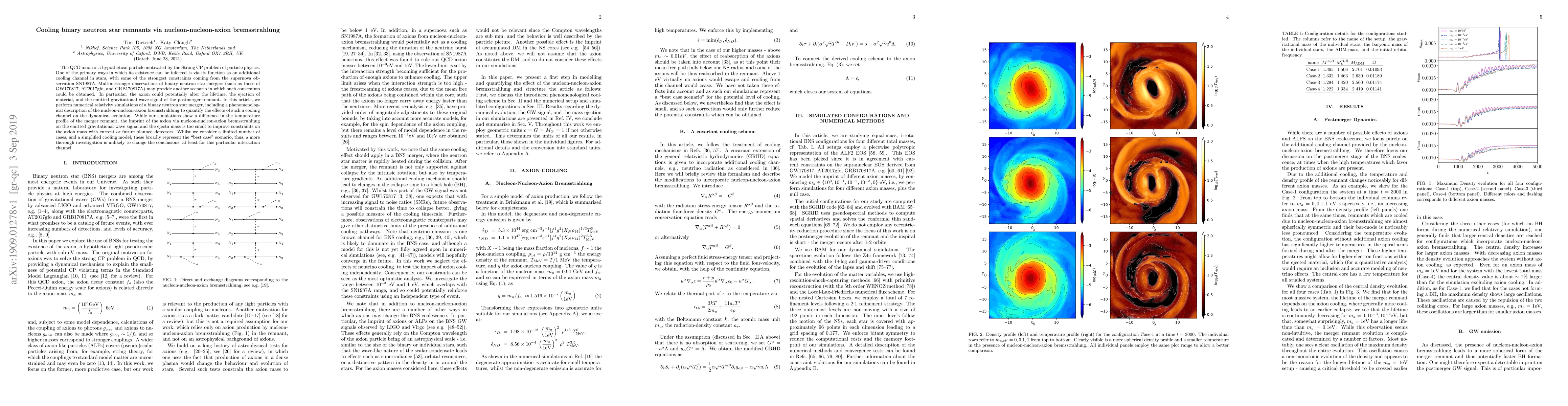 The QCD axion is a hypothetical particle motivated by the Strong CP problem of particle physics. One of the primary ways in which its existence can be inferred is via its function as an additional cooling channel in stars, with some of the strongest constraints coming from the supernova observation SN1987A. Multimessenger observations of binary neutron star mergers (such as those of GW170817, AT2017gfo, and GRB170817A) may provide another scenario in which such constraints could be obtained. In particular, the axion could potentially alter the lifetime, the ejection of material, and the emitted gravitational wave signal of the postmerger remnant. In this article, we perform numerical relativity simulations of a binary neutron star merger, including a phenomenological description of the nucleon-nucleon-axion bremsstrahlung to quantify the effects of such a cooling channel on the dynamical evolution. While our simulations show a difference in the temperature profile of the merger remnant, the imprint of the axion via nucleon-nucleon-axion bremsstrahlung on the emitted gravitational wave signal and the ejecta mass is too small to improve constraints on the axion mass with current or future planned detectors. Whilst we consider a limited number of cases, and a simplified cooling model, these broadly represent the "best case" scenario, thus, a more thorough investigation is unlikely to change the conclusions, at least for this particular interaction channel.