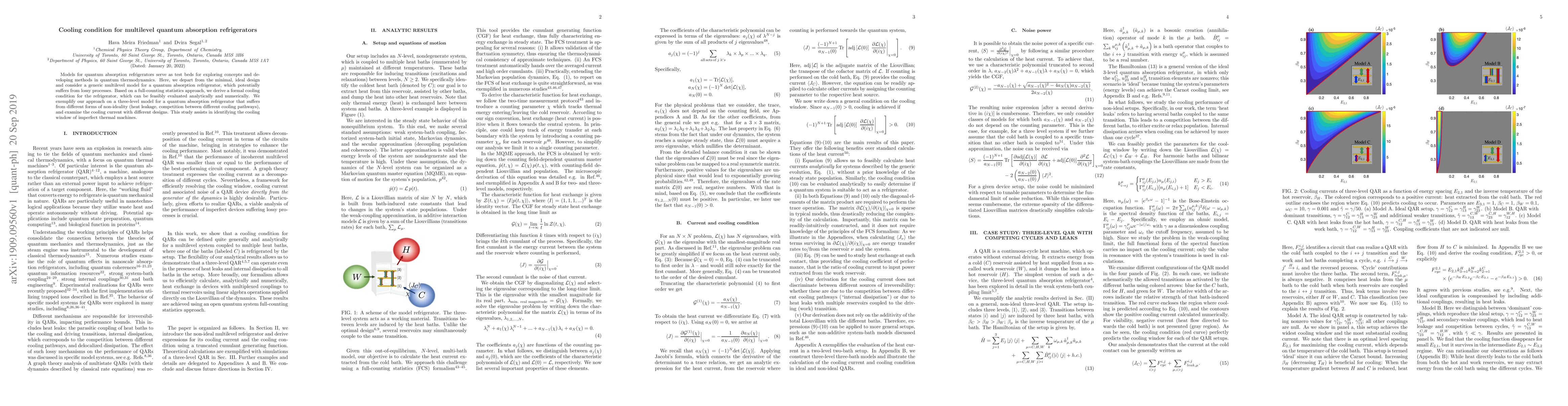 This paper develops a cooling condition for multilevel quantum absorption refrigerators using a full-counting statistics approach, addressing non-idealities like heat leakage. It provides an analytical and numerical framework for evaluating cooling efficiency in practical, imperfect quantum refrigeration systems.