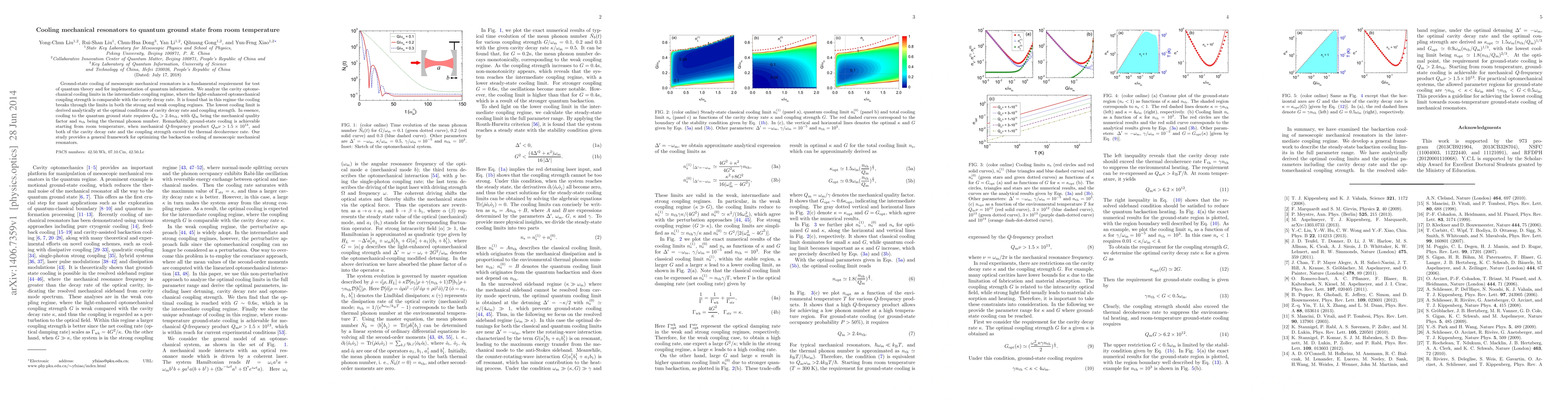 This paper explores the cooling of mesoscopic mechanical resonators to their quantum ground state from room temperature, revealing that optimal conditions involving the mechanical quality factor and thermal phonon number allow for such cooling. The study provides a framework for achieving ground-state cooling in the intermediate coupling regime, where both cavity decay rate and coupling strength surpass thermal decoherence rates.