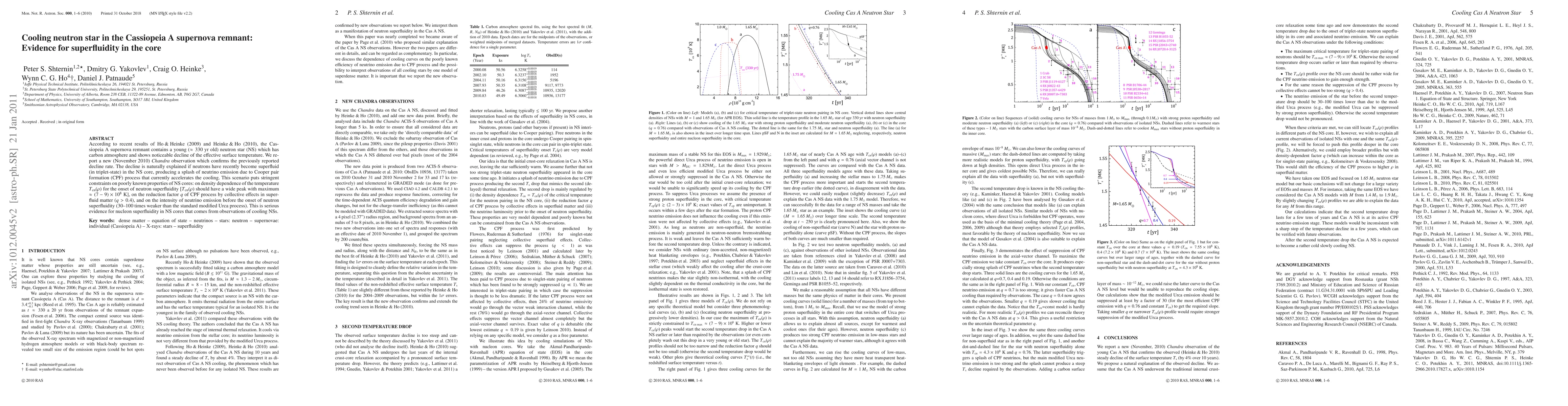According to recent results of Ho & Heinke (2009) and Heinke & Ho (2010), the Cassiopeia A supernova remnant contains a young neutron star which has carbon atmosphere and shows noticeable decline of the effective surface temperature. We report a new (November 2010) Chandra observation which confirms the previously reported decline rate. The decline is naturally explained if neutrons have recently become superfluid (in triplet-state) in the NS core, producing a splash of neutrino emission due to Cooper pair formation (CPF) process that currently accelerates the cooling. This scenario puts stringent constraints on poorly known properties of NS cores: on density dependence of the temperature $T_\mathrm{cn}(\rho)$ for the onset of neutron superfluidity [$T_\mathrm{cn}(\rho)$ should have a wide peak with maximum $\approx (7-9)\times 10^8$ K], on the reduction factor $q$ of CPF process by collective effects in superfluid matter ($q > 0.4$), and on the intensity of neutrino emission before the onset of neutron superfluidity (30--100 times weaker than the standard modified Urca process). This is serious evidence for nucleon superfluidity in NS cores that comes from observations of cooling NSs.