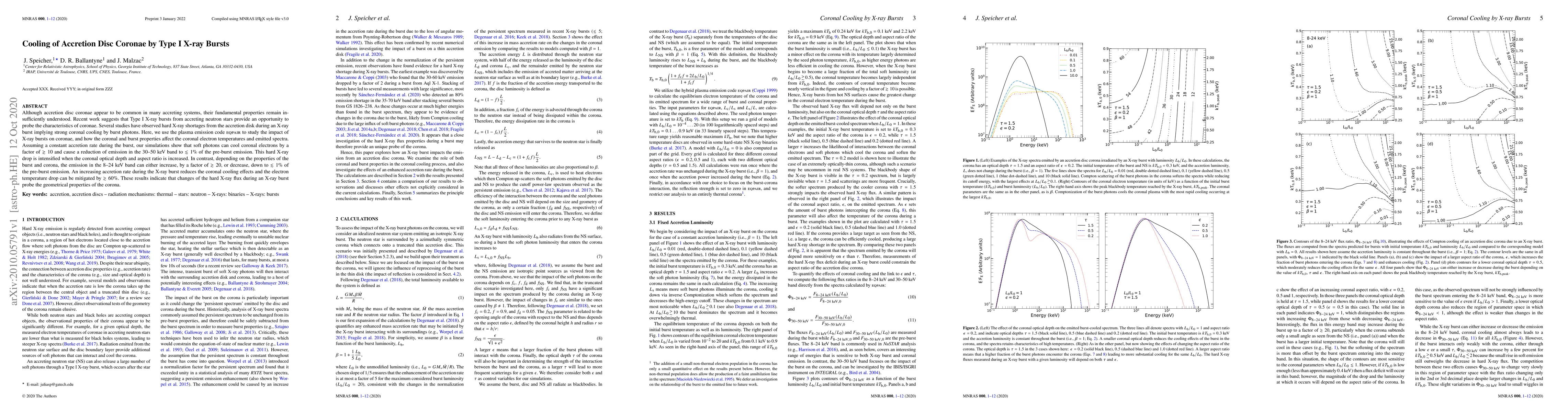 This paper investigates how Type I X-ray bursts affect the cooling of accretion disc coronae around neutron stars, using simulations to show that burst photons can significantly reduce coronal electron temperatures and hard X-ray emission. The study finds that the cooling effect is intensified by higher coronal optical depth and aspect ratio, while an increasing accretion rate during the burst can mitigate these effects.