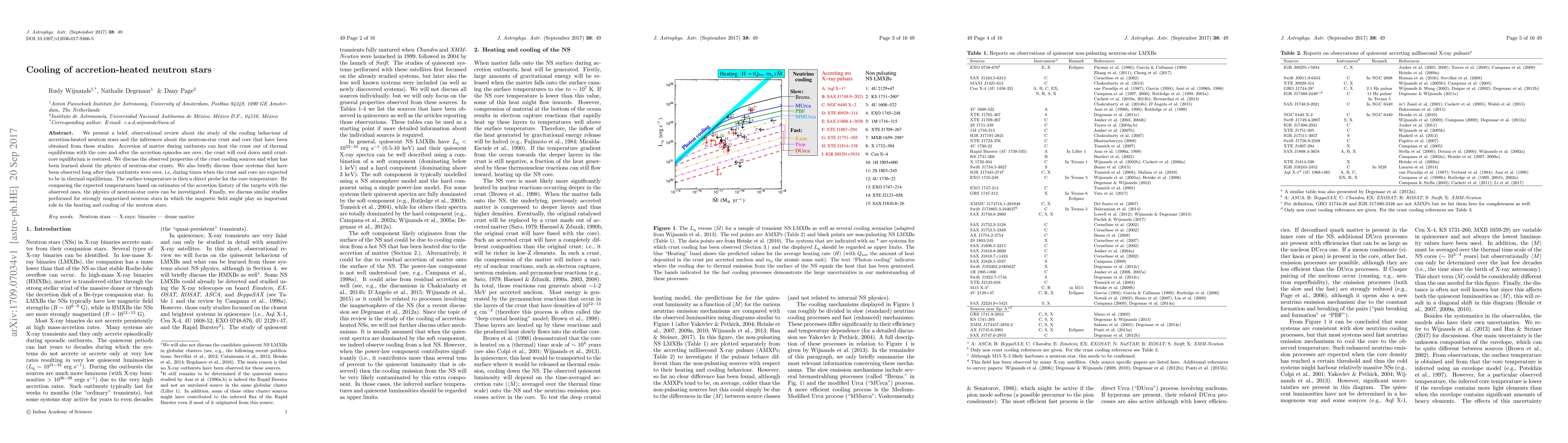 We present a brief, observational review about the study of the cooling behaviour of accretion-heated neutron stars and the inferences about the neutron-star crust and core that have been obtained from these studies. Accretion of matter during outbursts can heat the crust out of thermal equilibrium with the core and after the accretion episodes are over, the crust will cool down until crust-core equilibrium is restored. We discuss the observed properties of the crust cooling sources and what has been learned about the physics of neutron-star crusts. We also briefly discuss those systems that have been observed long after their outbursts were over, i.e, during times when the crust and core are expected to be in thermal equilibrium. The surface temperature is then a direct probe for the core temperature. By comparing the expected temperatures based on estimates of the accretion history of the targets with the observed ones, the physics of neutron-star cores can be investigated. Finally, we discuss similar studies performed for strongly magnetized neutron stars in which the magnetic field might play an important role in the heating and cooling of the neutron stars.