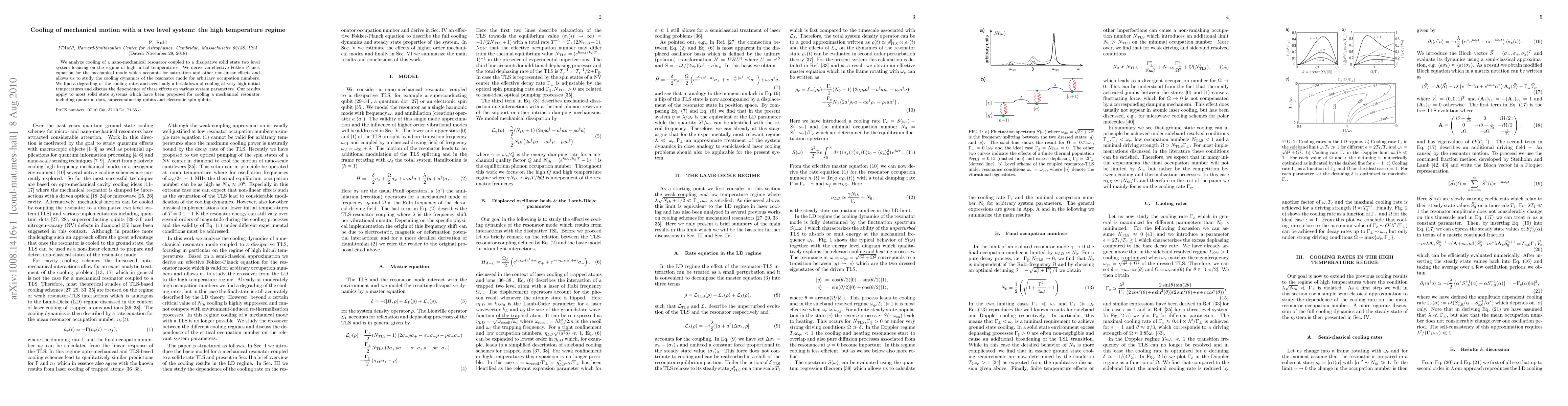 This paper investigates the cooling dynamics of a nano-mechanical resonator coupled to a two-level system at high initial temperatures, deriving an effective Fokker-Planck equation to account for saturation and non-linear effects. It finds that cooling rates degrade and eventually cease at very high temperatures, with implications for various solid-state cooling systems.