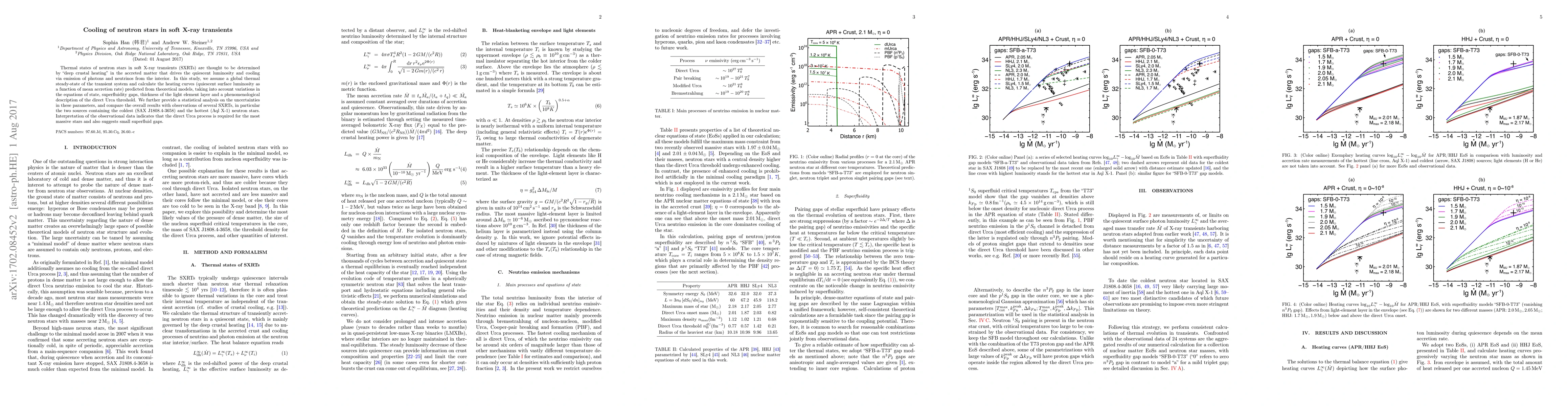 This paper investigates the thermal states of neutron stars in soft X-ray transients, focusing on "deep crustal heating" and cooling mechanisms. It models heating curves and compares theoretical predictions with observational data, suggesting the necessity of the direct Urca process for massive stars and small superfluid gaps.