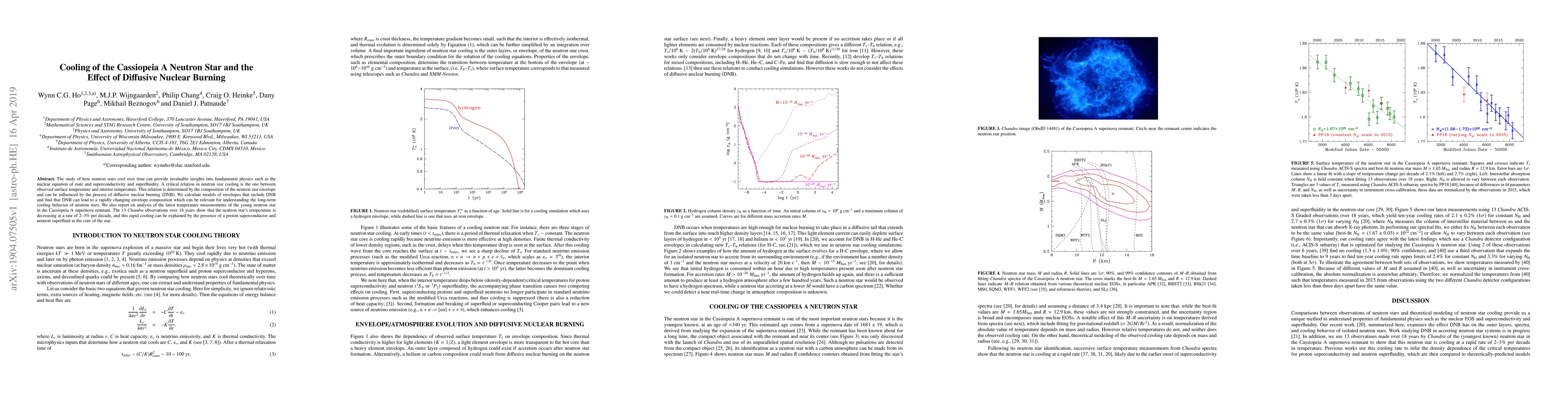 The study of how neutron stars cool over time can provide invaluable insights into fundamental physics such as the nuclear equation of state and superconductivity and superfluidity. A critical relation in neutron star cooling is the one between observed surface temperature and interior temperature. This relation is determined by the composition of the neutron star envelope and can be influenced by the process of diffusive nuclear burning (DNB). We calculate models of envelopes that include DNB and find that DNB can lead to a rapidly changing envelope composition which can be relevant for understanding the long-term cooling behavior of neutron stars. We also report on analysis of the latest temperature measurements of the young neutron star in the Cassiopeia A supernova remnant. The 13 Chandra observations over 18 years show that the neutron star's temperature is decreasing at a rate of 2-3 percent per decade, and this rapid cooling can be explained by the presence of a proton superconductor and neutron superfluid in the core of the star.