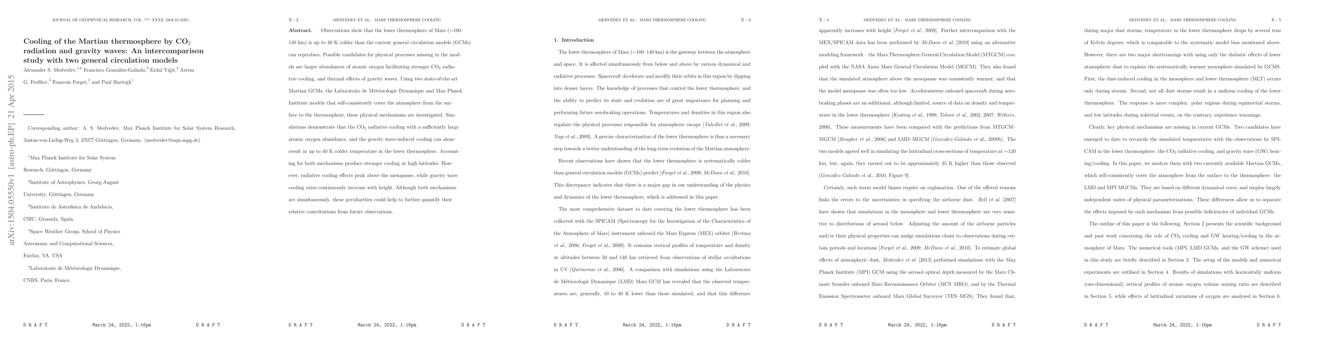 This study investigates the cooling mechanisms in Mars' thermosphere, finding that CO$_2$ radiative cooling with high atomic oxygen abundance and gravity wave effects can explain the observed temperature discrepancies in the lower thermosphere. Both mechanisms contribute to significant cooling, with radiative cooling peaking above the mesopause and gravity waves increasing with height.