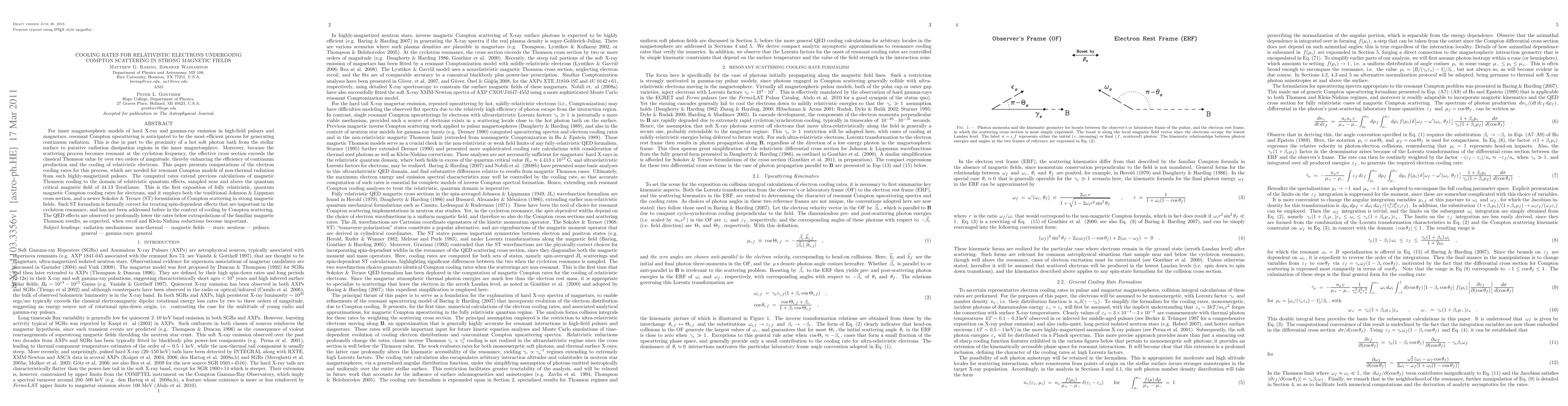 This paper computes relativistic electron cooling rates via Compton scattering in strong magnetic fields, crucial for understanding non-thermal radiation in magnetars and pulsars. It employs both traditional and novel quantum magnetic Compton scattering formulations, revealing significant QED effects that reduce cooling rates significantly compared to classical predictions.
