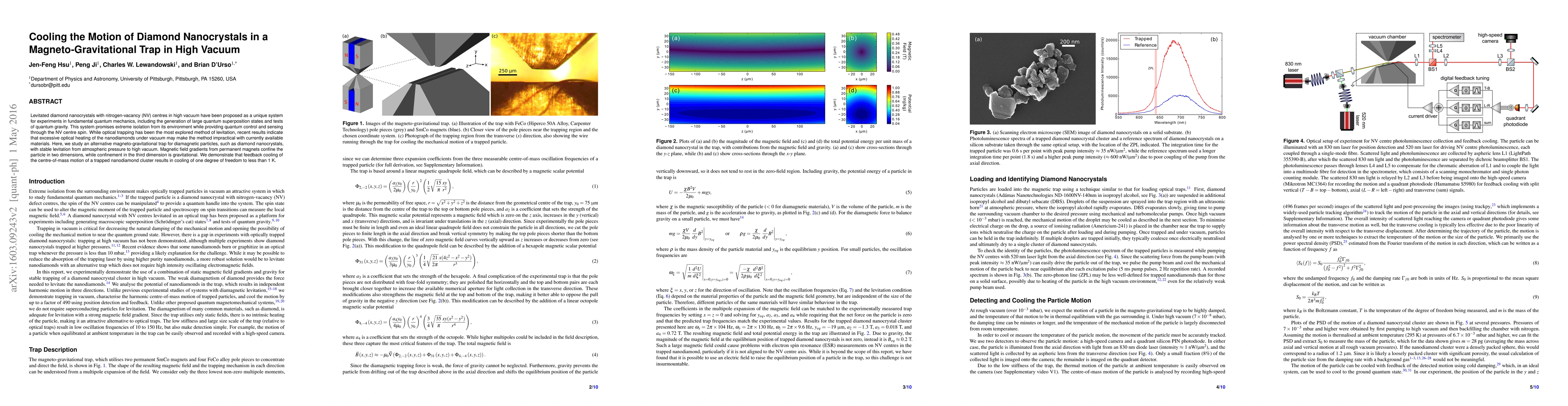This paper investigates the use of a magneto-gravitational trap to levitate and cool diamond nanocrystals in high vacuum, offering a potential solution to optical heating issues. The study successfully demonstrates cooling of the nanodiamond cluster's motion to below 1 K, paving the way for quantum experiments in fundamental mechanics.