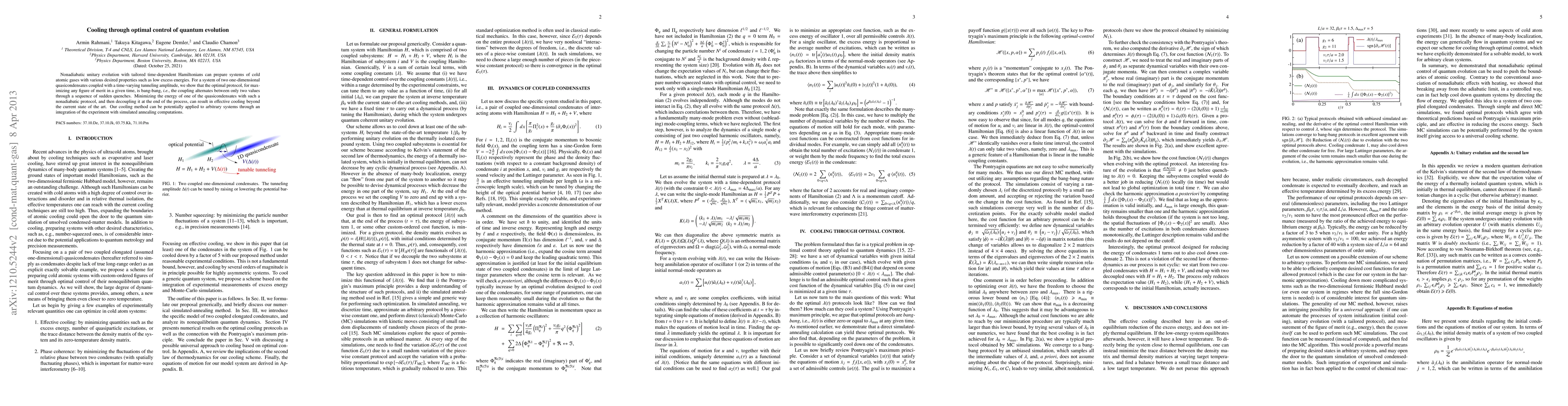 Nonadiabatic unitary evolution with tailored time-dependent Hamiltonians can prepare systems of cold atomic gases with various desired properties. For a system of two one-dimensional quasicondensates coupled with a time-varying tunneling amplitude, we show that the optimal protocol, for maximizing any figure of merit in a given time, is bang-bang, i.e., the coupling alternates between only two values through a sequence of sudden quenches. Minimizing the energy of one of the quasicondensates with such nonadiabatic protocols, and then decoupling it at the end of the process, can result in effective cooling beyond the current state of the art. Our cooling method can be potentially applied to arbitrary systems through an integration of the experiment with simulated annealing computations.