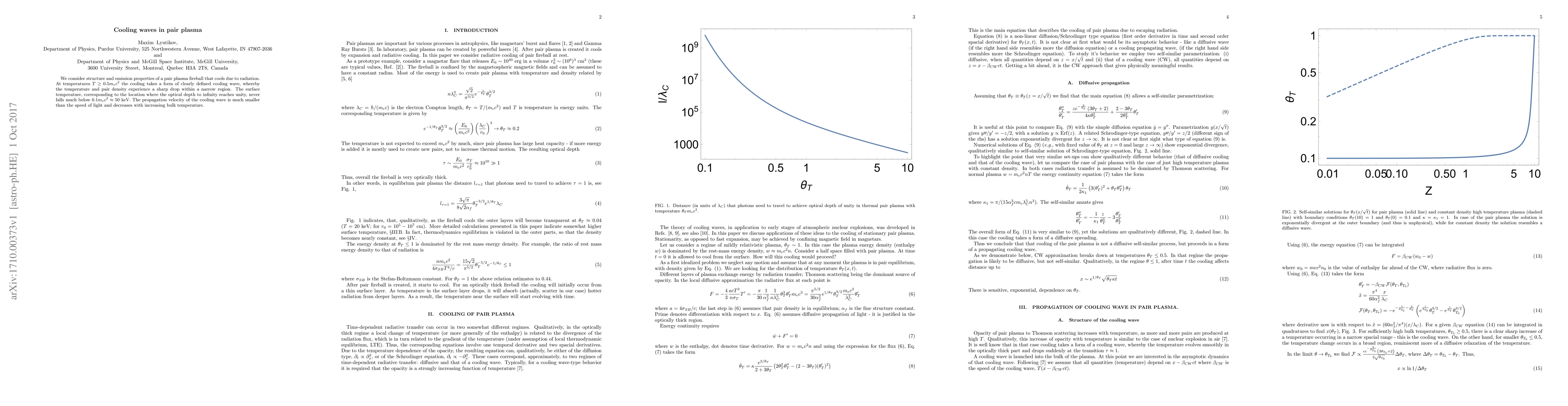 This paper investigates the formation and characteristics of cooling waves in pair plasmas, revealing that at high temperatures, cooling manifests as a sharp wave with a significant drop in temperature and pair density. The surface temperature remains relatively high, around 50 keV, and the cooling wave's velocity is subluminal and decreases with increasing bulk temperature.