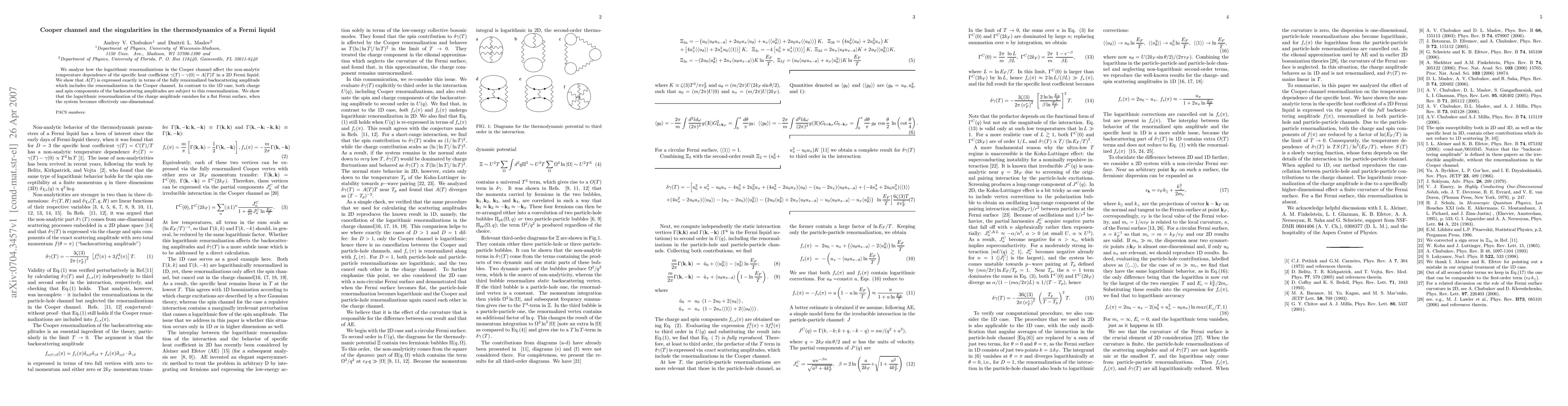 We analyze how the logarithmic renormalizations in the Cooper channel affect the non-analytic temperature dependence of the specific heat coefficient \gamma (T) - \gamma (0)=A(T)T in a 2D Fermi liquid. We show that A(T) is expressed exactly in terms of the fully renormalized backscattering amplitude which includes the renormalization in the Cooper channel. In contrast to the 1D case, both charge and spin components of the backscattering amplitudes are subject to this renormalization. We show that the logarithmic renormalization of the charge amplitude vanishes for a flat Fermi surface, when the system becomes effectively one-dimensional.
