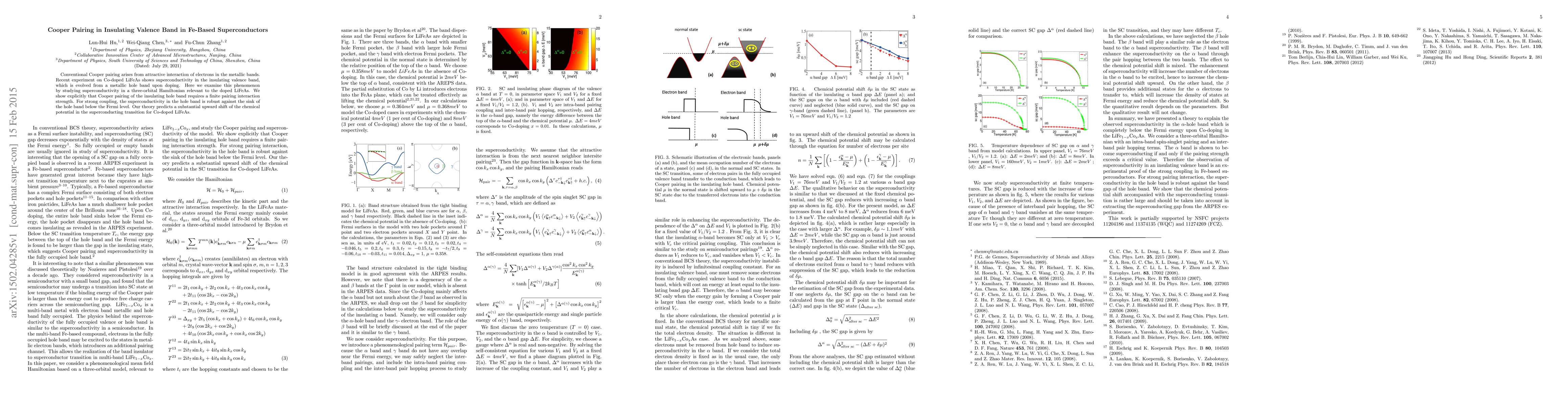 Conventional Cooper pairing arises from attractive interaction of electrons in the metallic bands. Recent experiment on Co-doped LiFeAs shows superconductivity in the insulating valence band, which is evolved from a metallic hole band upon doping. Here we examine this phenomenon by studying superconductivity in a three-orbital Hamiltonian relevant to the doped LiFeAs. We show explicitly that Cooper pairing of the insulating hole band requires a finite pairing interaction strength. For strong coupling, the superconductivity in the hole band is robust against the sink of the hole band below the Fermi level. Our theory predicts a substantial upward shift of the chemical potential in the superconducting transition for Co-doped LiFeAs.