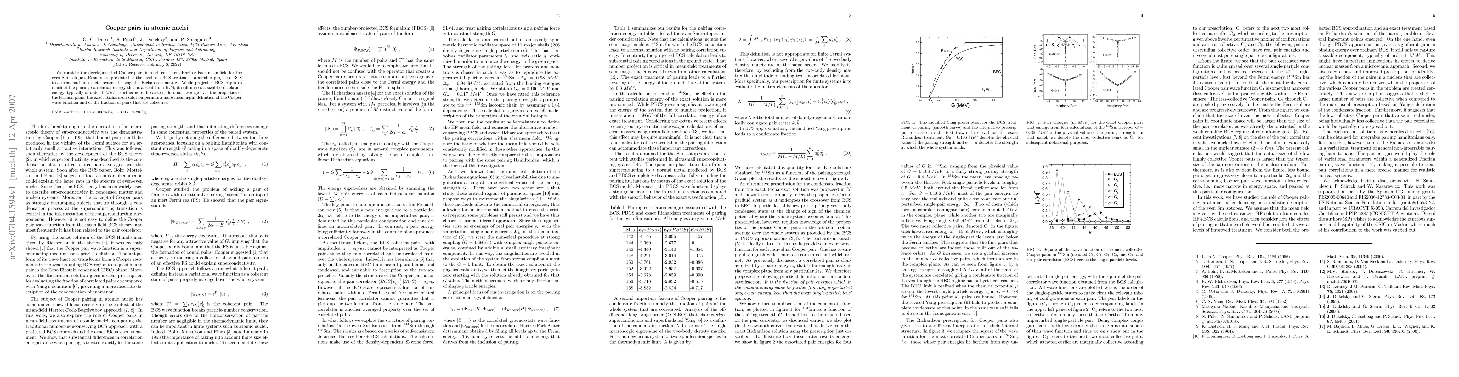 We consider the development of Cooper pairs in a self-consistent Hartree Fock mean field for the even Sm isotopes. Results are presented at the level of a BCS treatment, a number-projected BCS treatment and an exact treatment using the Richardson ansatz. While projected BCS captures much of the pairing correlation energy that is absent from BCS, it still misses a sizable correlation energy, typically of order $1 MeV$. Furthermore, because it does not average over the properties of the fermion pairs, the exact Richardson solution permits a more meaningful definition of the Cooper wave function and of the fraction of pairs that are collective.