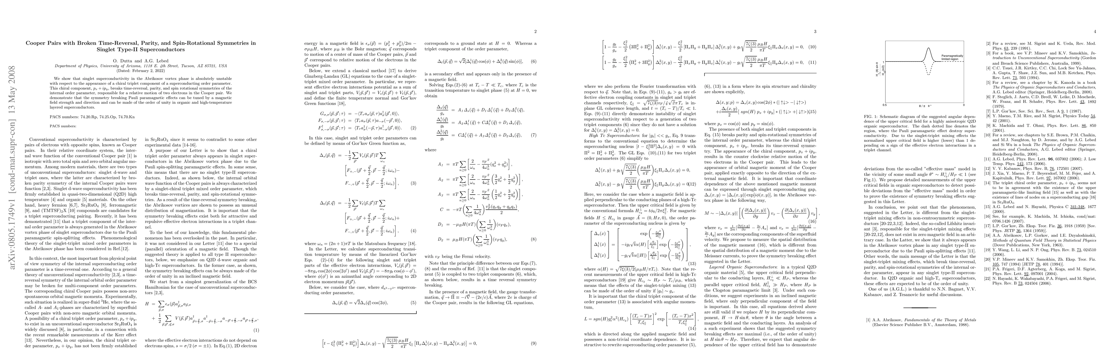 This paper demonstrates that singlet superconductivity in Type-II superconductors can become unstable, leading to a chiral triplet component in the superconducting order parameter that breaks time-reversal, parity, and spin-rotational symmetries. The effects of symmetry breaking can be controlled by magnetic field strength and direction, particularly in organic and high-temperature superconductors.