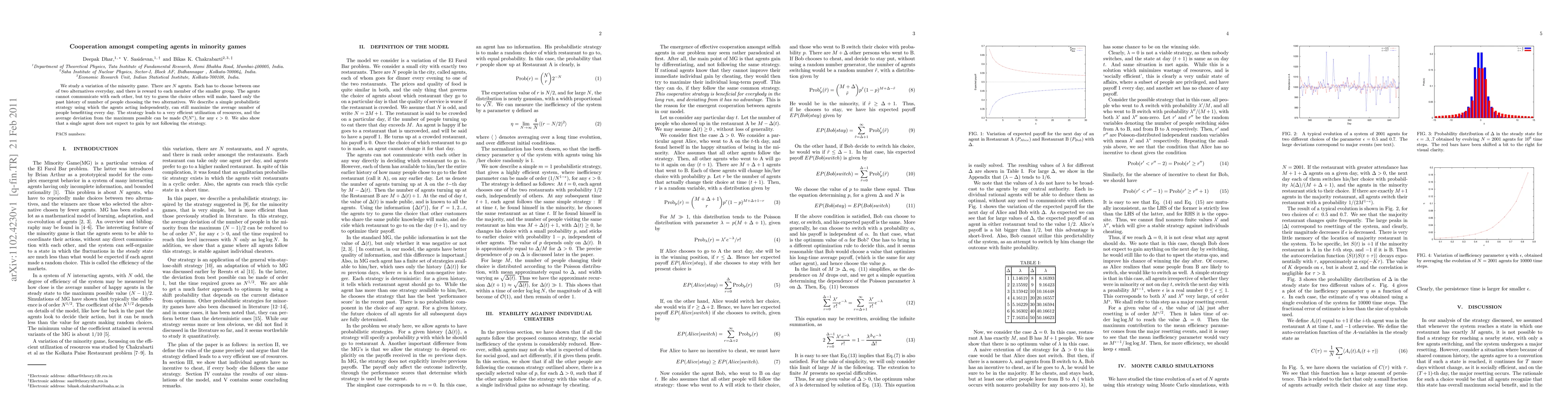 We study a variation of the minority game. There are N agents. Each has to choose between one of two alternatives everyday, and there is reward to each member of the smaller group. The agents cannot communicate with each other, but try to guess the choice others will make, based only the past history of number of people choosing the two alternatives. We describe a simple probabilistic strategy using which the agents acting independently, can still maximize the average number of people benefitting every day. The strategy leads to a very efficient utilization of resources, and the average deviation from the maximum possible can be made of order $(N^{\epsilon})$, for any $\epsilon >0$. We also show that a single agent does not expect to gain by not following the strategy.
